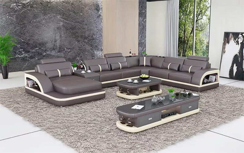 Living room landscape couch upholstery sofa set 3-piece set coffee table sideboard