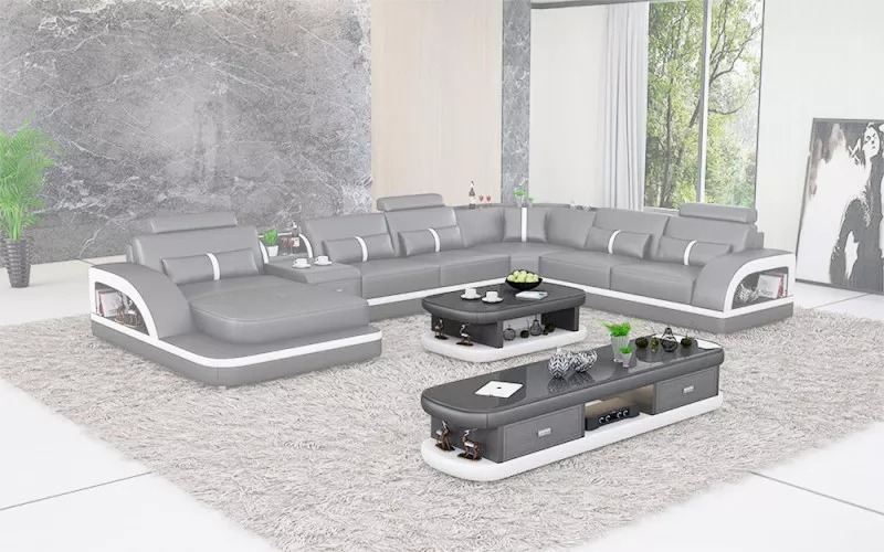 Introducing the 'Living Room Landscape Couch Upholstery Sofa Set,' a stunning 3-piece ensemble that elegantly combines style and functionality to enhance your living space. This luxurious set includes a striking U-shaped corner sofa, spacious enough to accommodate your family and guests comfortably. With dimensions of approximately 273 x 391 x 195 cm or 195 x 391 x 273 cm, this sofa offers both flexibility in arrangement and ample seating area. The refined design features a variety of material choices for a personalized touch, including premium leather fiber material, genuine Italian cowhide leather, and textiles. Complemented by a sleek coffee table and a practical sideboard, this set marries aesthetic appeal with utility. Crafted with a robust inner frame of real wood, it promises durability while exuding sophistication with its thoughtful details and exquisite craftsmanship.