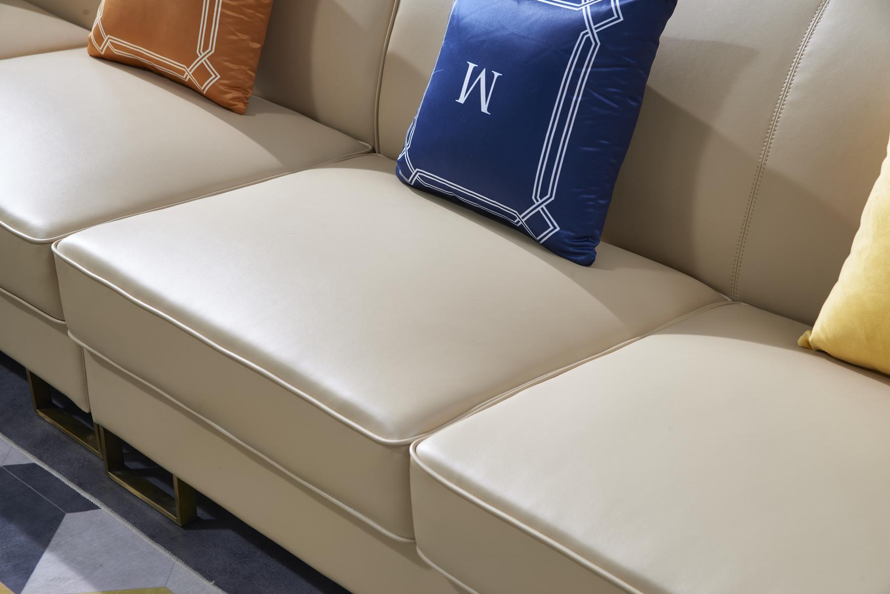 Transform your living space with the exquisite 'Luxury Design Corner Sofa Couch Upholstered Leather Suite Living Landscape Italy'. This stunning sofa features a stylish L-shape that seamlessly blends contemporary elegance with classic comfort. With a generous length of approximately 335 x 175 cm, a height of 80 cm, and a depth of 92 cm, this sofa offers ample seating space to accommodate family and friends. The sophisticated design includes sturdy construction with an inner frame made of real wood, ensuring durability and longevity. The premium faux leather upholstery, combined with stainless steel accents, provides a luxurious aesthetic while being easy to maintain. Enjoy ultimate comfort with a supportive sub-spring comprising a spring core design, delivering a perfect balance of softness and firmness.
