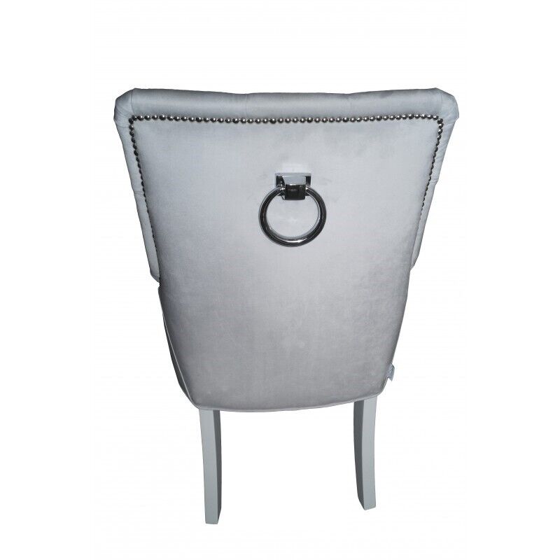 Introducing the 'Chesterfield Chairs with Knocker', a set of two exquisite pieces that blend both style and sophistication for any elegant space. These chairs bring a touch of luxury with their noble upholstery, featuring a fabric finish that can be tailored to your color preference, allowing them to seamlessly integrate with your existing decor. The chairs boast an inner frame crafted from real wood, ensuring durability and stability while exemplifying skilled craftsmanship. With dimensions of approximately 60 cm in length, 95 cm in height, and 63 cm in depth, they offer ample space and comfort for relaxation. The seat depth of approximately 45 cm combined with a seat height of 49 cm ensures that these chairs are both comfortable and ergonomically friendly, making them an ideal choice for dining or lounging settings.