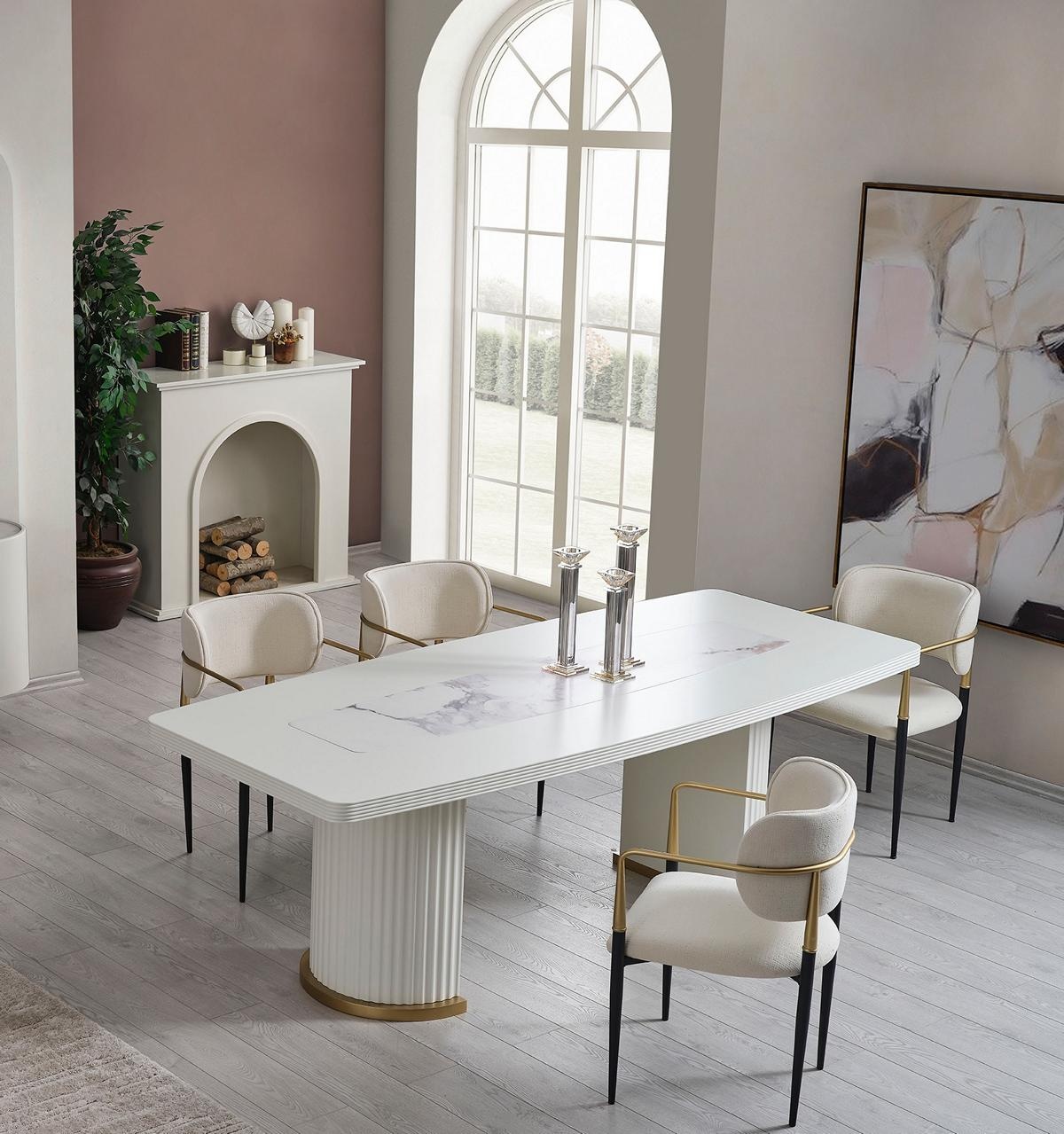 Luxury dining table modern white wooden dining table