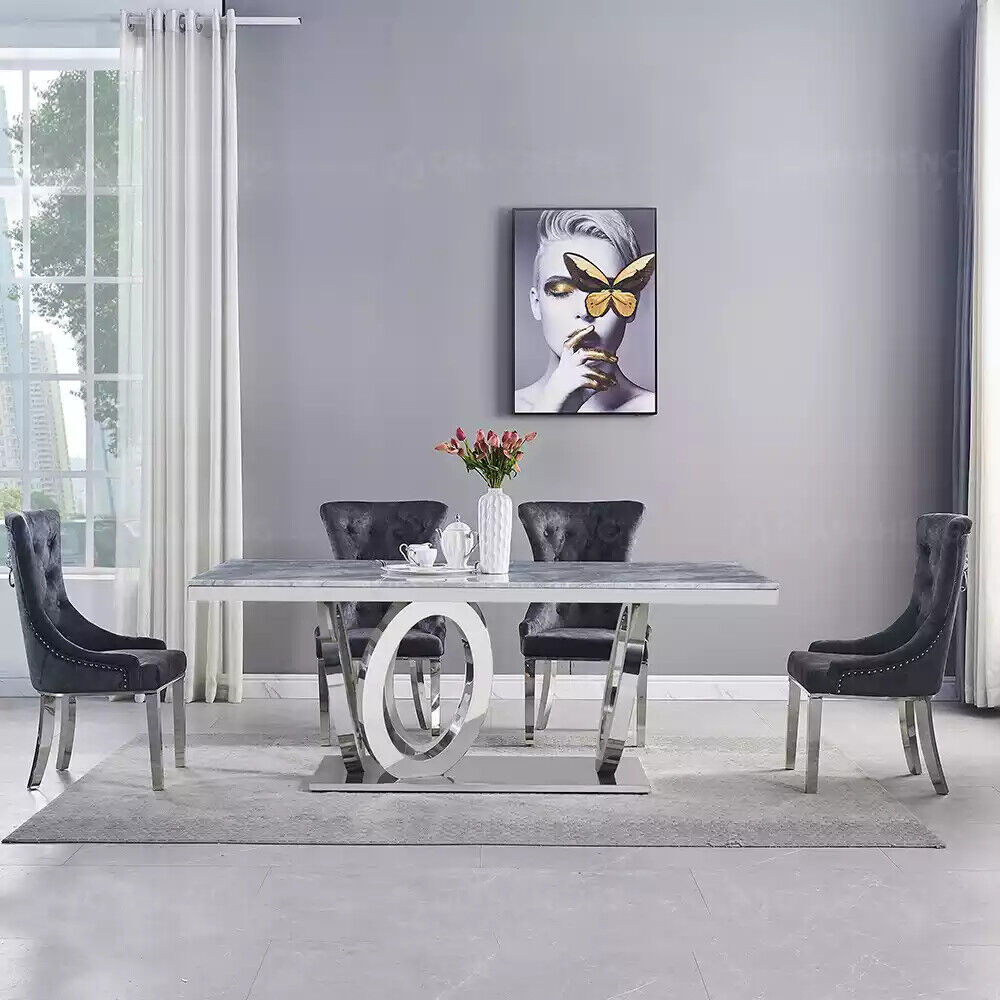 Introducing the 'Modern Designer Dining Room Dining Table Kitchen Table Glass Top Style Furniture' - a perfect blend of elegance and functionality. Standing at dimensions of approximately 200 x 75 x 100 cm, this table is crafted to be the centerpiece of your dining area, providing ample space for gatherings and intimate family dinners alike. Made with a sleek combination of stainless steel and glass, its contemporary design seamlessly complements any modern interior while offering durability and easy maintenance. The sturdy stainless steel frame supports a chic glass top, creating a stunning visual contrast that elevates your home decor.