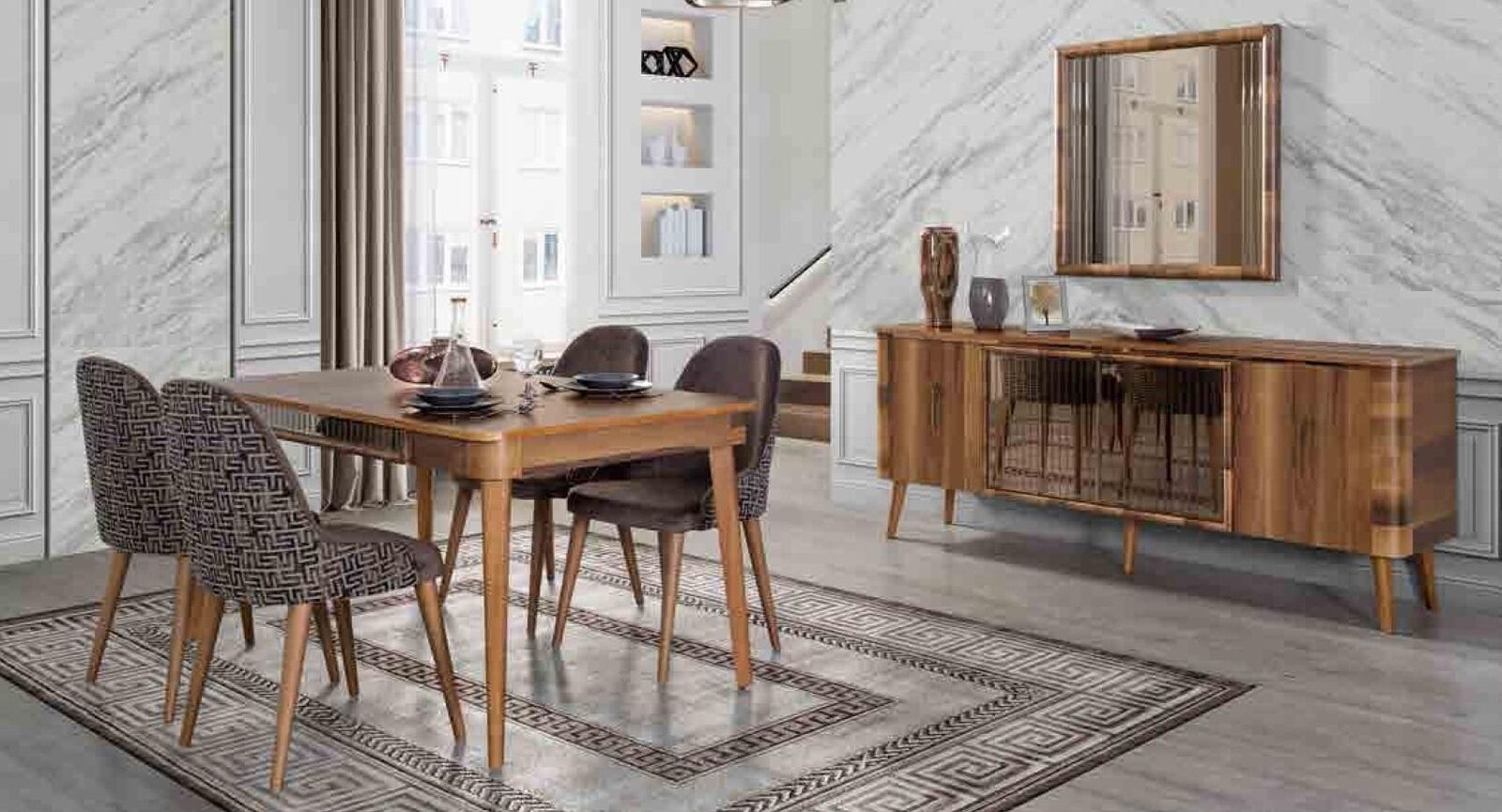 This dining room set is more than just furniture; it's an experience tailored for the contemporary home. The extendable table is ideal for hosting intimate family dinners or larger gatherings during festive seasons, ensuring you're always prepared for unexpected guests. The accompanying sideboard provides ample storage space for dining essentials, making it a practical addition to any dining room, while the sleek mirror enhances lighting and the perception of space, making your dining area feel more open and inviting. Whether you're renovating your dining room or setting up a new home, the 'Complete Sets Dining Room Set' offers incredible versatility and style, effortlessly combining comfort with class to elevate your dining experience. Bring your space to life with this exceptional set, and enjoy the perfect balance of function and design.