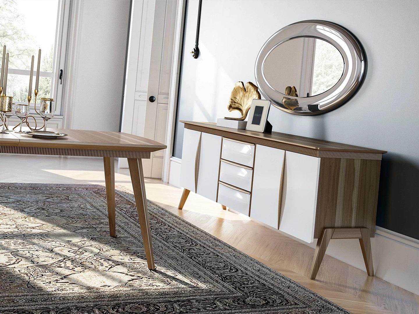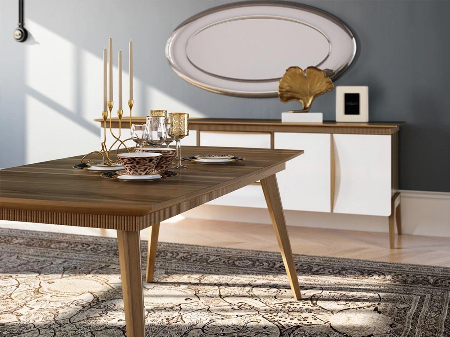 Ideal for both everyday dining and special occasions, this dining set redefines modern luxury. Its spacious table surface easily accommodates abundant spreads, making it perfect for entertaining guests or enjoying a casual breakfast with family. The elegant white color scheme seamlessly blends with any interior style, from minimalist to classic. The sideboard not only adds a touch of sophistication but also provides practical storage solutions for your dinnerware, linens, and more, helping you maintain a tidy and inviting dining area. Elevate your dining experience with this premium furniture set, which combines aesthetics with functionality to create a harmonious and inviting atmosphere.