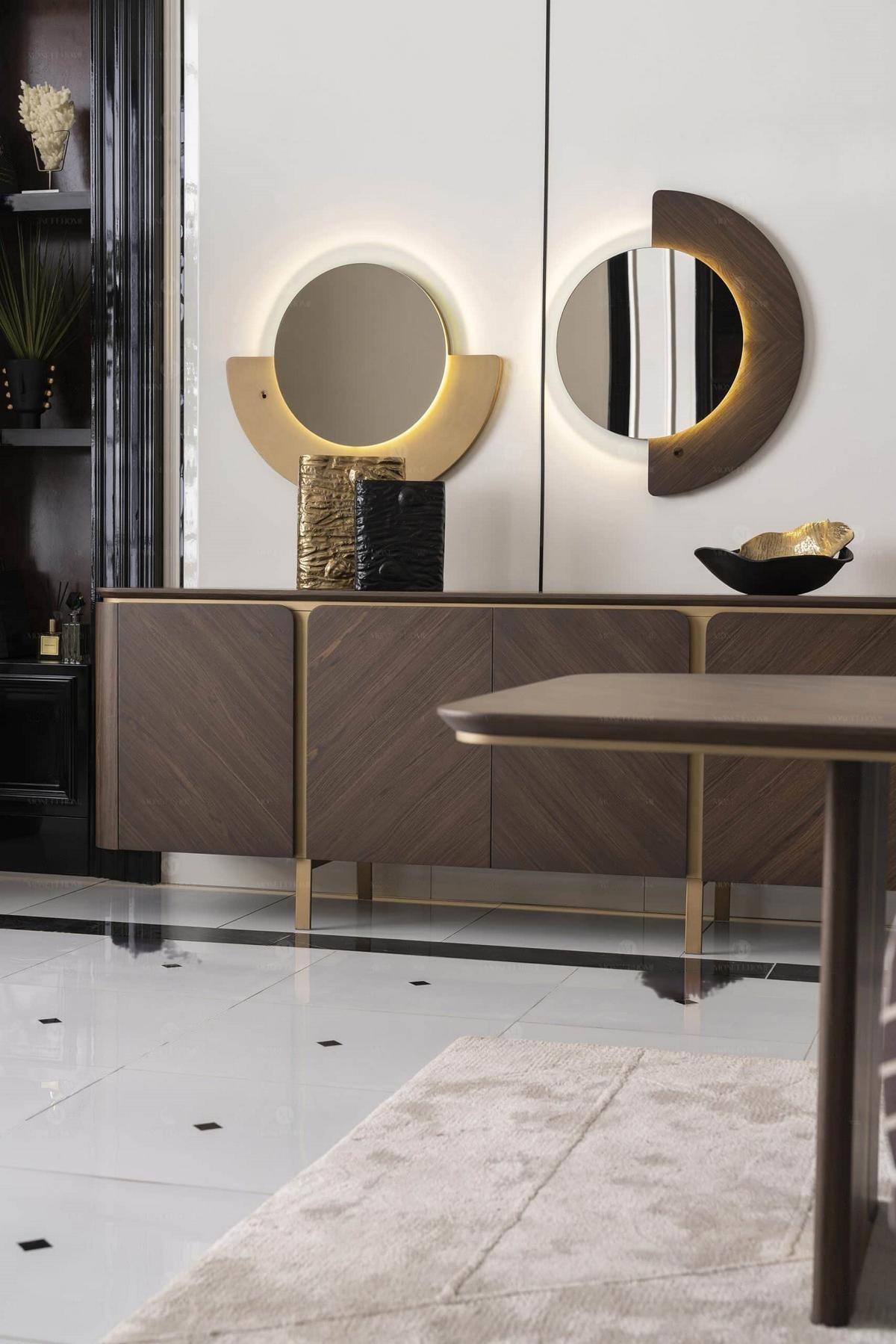 This 10-piece dining set is not only functional but also enhances the aesthetic appeal of any dining room. The sideboard, with dimensions of approximately 220 cm in length, 51 cm in width, and 85 cm in height, offers additional storage and display space, making it ideal for storing dinnerware or showcasing decorative items. The two mirrors, measuring 80 cm by 6 cm by 65 cm, are perfect for adding depth and a touch of elegance to your dining area. This set is perfect for both everyday meals and entertaining guests, bringing a sense of cohesion and luxury to your home decor. Whether you're hosting a festive gathering or enjoying a quiet family dinner, this dining set ensures that every occasion is a memorable one.