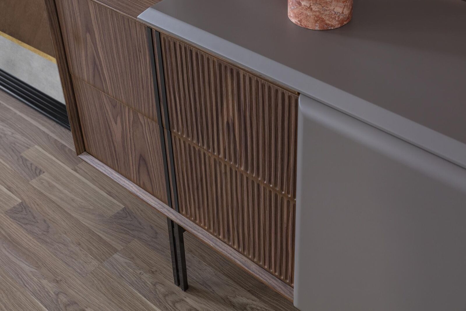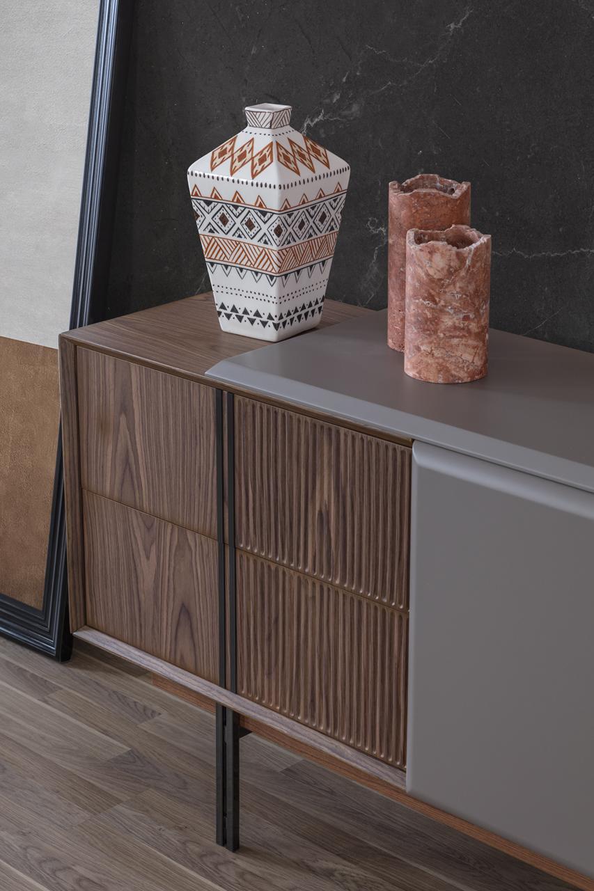 Beyond its functional benefits, this dining room set also offers versatile uses and placement options. The sideboard measuring 209 x 45 x 82 cm is ideal for storing dinnerware or displaying decorative items, adding both utility and style to your dining area. The included mirror, with its elegant 84 cm diameter, not only enhances the visual appeal of the room but also creates an illusion of greater space. Whether it's for daily meals or special occasions, this dining room set provides a complete solution to your dining needs, combining practicality with an inviting atmosphere that brings people together.
