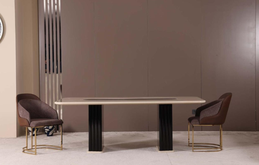 Beyond its stylish appearance, the Dining Room Set is flexible in meeting your design needs, with the option to request other colors to suit your personal taste and existing decor. Whether you're hosting a holiday feast or enjoying a quiet breakfast, this dining set creates a refined setting for any occasion. The generous size of the table makes it ideal for both casual meals and special occasions, while the comfortable armchairs encourage long conversations and enjoyable dining experiences. Elevate your dining area with this luxurious furniture set that promises not only to meet your needs but also to be a conversation starter amongst your guests.