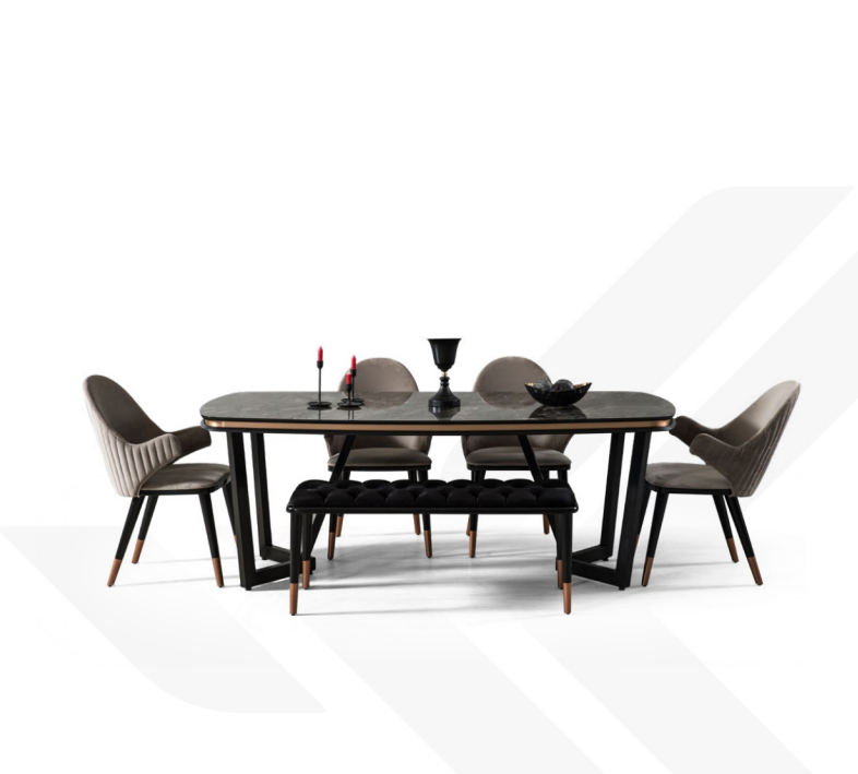 Dining room set consists of dining table + 4x chairs black color 6-piece set.