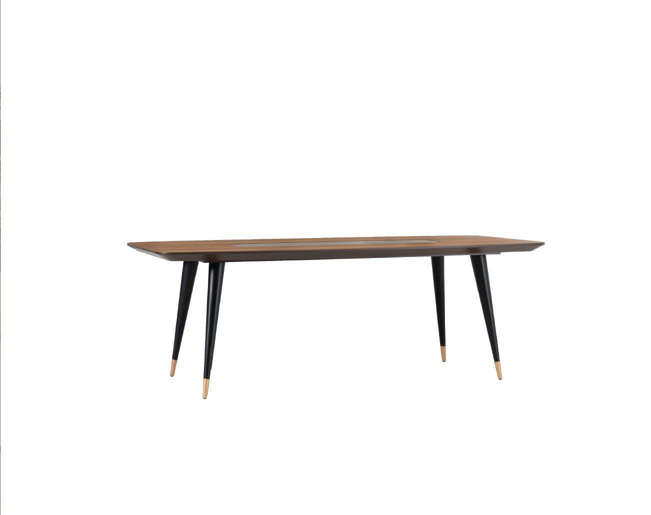 Introducing the 'Dining table with 4 chairs dining room set dining group wood table 5-piece group,' a splendid combination of elegance and functionality for your dining space. This refined ensemble is meticulously crafted with a combination of wood, textile, and metal, offering a robust and stylish addition to any dining area. The generously sized table measures approximately 220 cm in length, 100 cm in width, and 76 cm in height, providing ample space for meals, gatherings, or family game nights. Accompanying the table are four exquisitely designed chairs, each measuring approximately 74.5 cm in length, 48 cm in width, and 98.5 cm in height. The chairs are not just about looks; they promise comfort and durability, making them perfect for long dinners and casual conversations. The set is available in a color scheme as shown, blending seamlessly with modern or traditional interior decor.