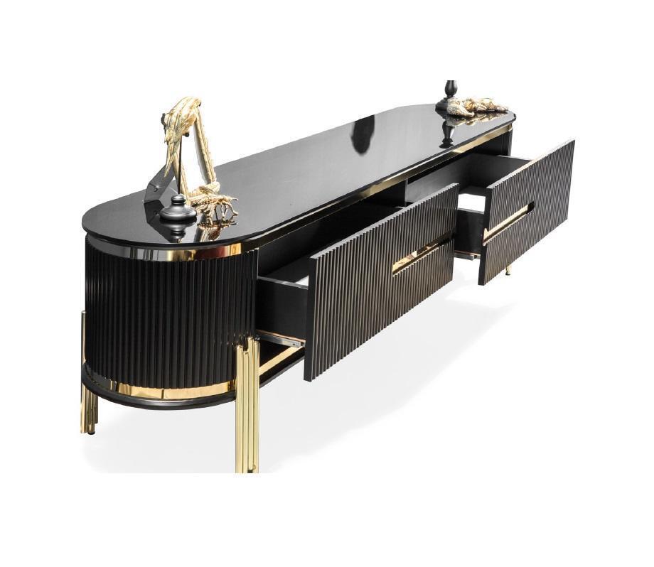 Introducing the 'Luxury Dining Room Dining Suite Design Table Chest of Drawers 4x Chairs Group 6-piece Set New', a remarkable ensemble that combines elegance and functionality to transform your dining space. This exquisite set includes a spacious dining table, a beautifully designed dresser, and four ergonomically crafted chairs. The dining table, with dimensions of approx: 200 x 90 x 82 cm, offers ample space for family dinners and gatherings. The lavish dresser, measuring approx: 208 x 54 x 84 cm, provides convenient storage while adding a touch of sophistication to your room. The chairs, each measuring approx: 60 x 58 x 80 cm with a comfortable seat height of approx: 44 cm, are ideal for prolonged seating. Crafted using premium-quality wood, stainless steel, and textiles, this set ensures durability and an unmatched aesthetic appeal. Available in a stunning color as shown, with other colors available upon request, this dining suite is truly a statement of luxury.