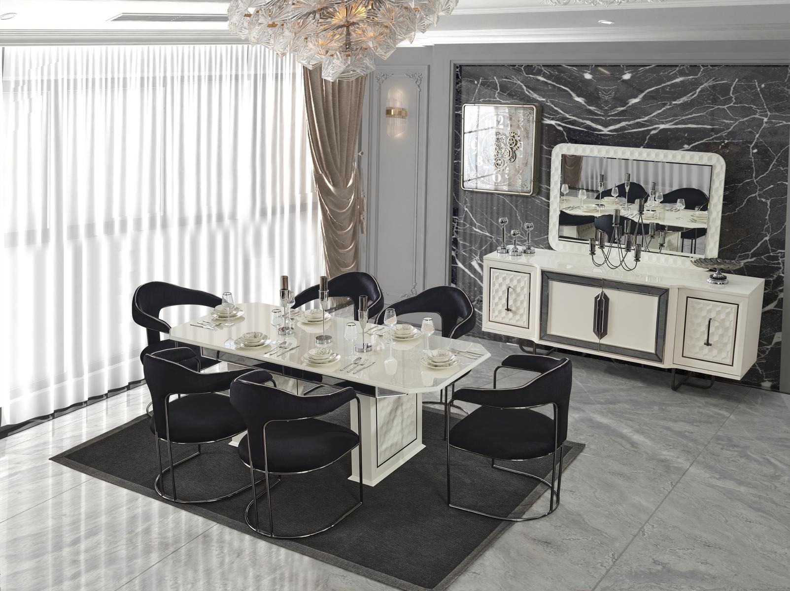 Modern dining room set white dining table 6 chairs white sideboard mirror new