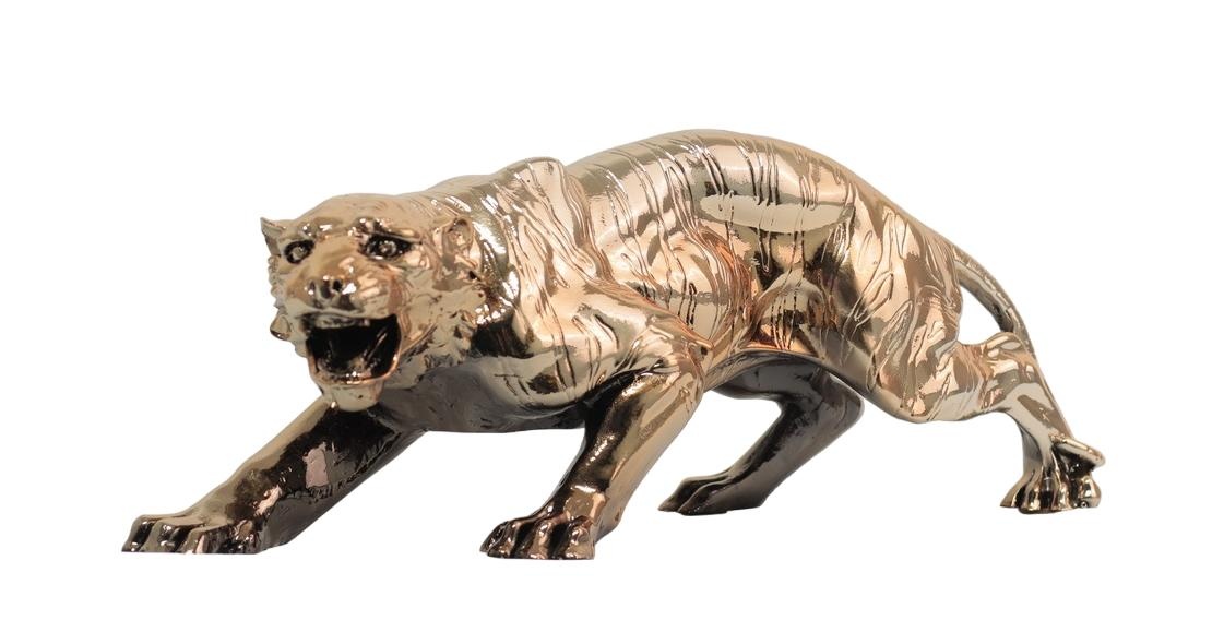 The Modern Decorative Figure Panther, standing at an imposing 46 cm, embodies the essence of luxury with its striking gold finish. This exquisite piece transcends mere decoration, becoming a statement of sophistication and power within any refined space. Crafted with precision, the panther exudes a sense of grace and strength, making it an ideal accent for those who appreciate the finer things in life. Its lustrous hue captures light beautifully, enhancing the ambiance of your exclusive home. For over 20 years, our brand has been synonymous with unparalleled elegance, and this decorative figure is a testament to our commitment to premium design. Elevate your interior with this captivating symbol of opulence.