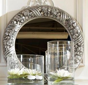 Wall mirror mirror round little mirror silver baroque rococo furniture Italy wood