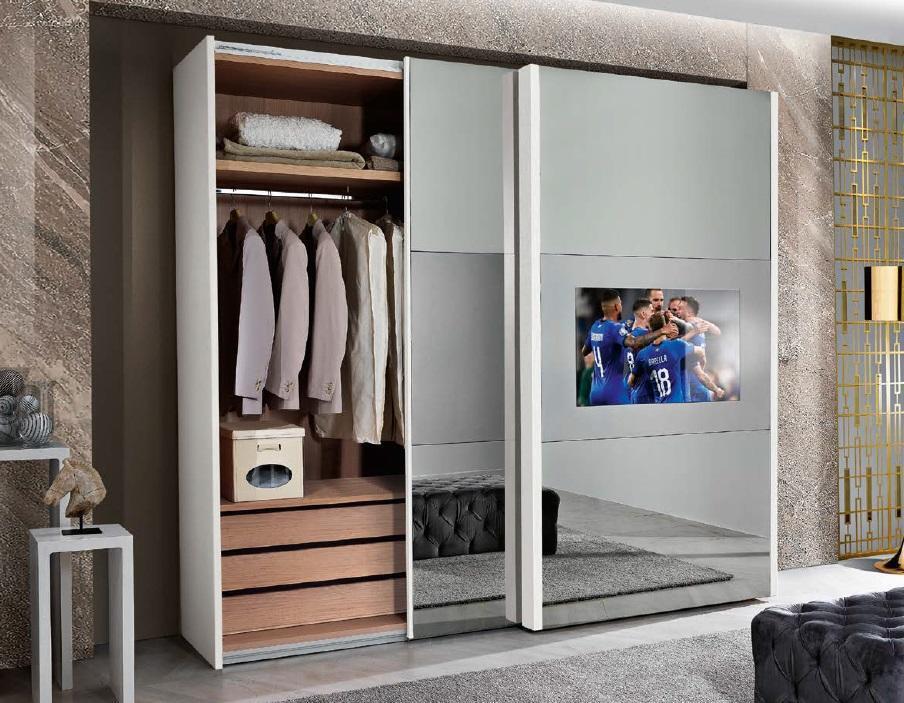 Bedroom set 6-piece: bed, nightstand, dresser, mirror, wardrobe.