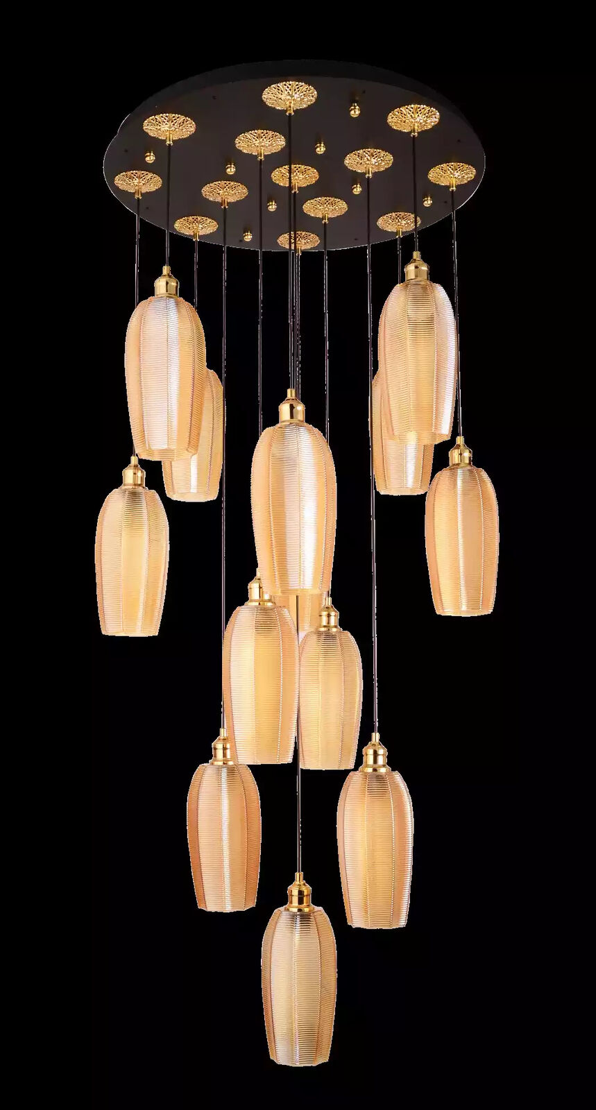 Ideal for those looking to make a statement, the 'Chandelier Luxury Ceiling Lamp Modern Gold Glass' provides a perfect blend of form and function. Its elegant design makes it suitable for both contemporary and traditional decors, fitting seamlessly into varied aesthetic settings. Imagine this chandelier casting a warm, inviting glow over a formal dining setup during special dinners, or providing a stylish, modern touch to a sleek, minimalist space. Its impressive size and robust construction make it a standout piece, yet its refined appearance complements rather than overwhelms a room's overall design. Whether used to highlight architectural features in a grand hallway or to enhance the luxurious feel of a master bedroom, this chandelier delivers unparalleled style and sophistication.