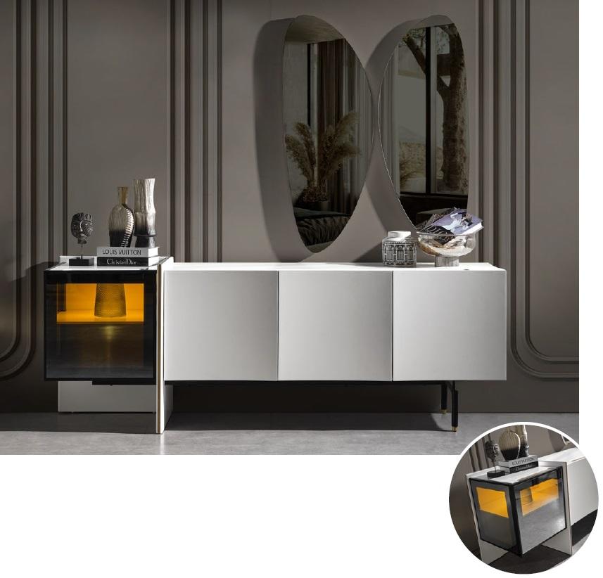 Group Sideboard Mirror Dresser Wood Modern Dining Room White Design New