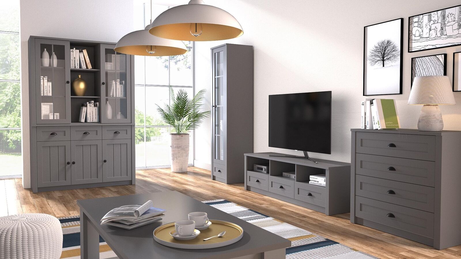 Each element of the set offers a versatile solution to your storage and display needs, maximizing both utility and aesthetic charm. The **Provence-style RTV unit** stands as a centerpiece for your entertainment system, while the **Provence K4 sideboard** offers ample storage for your essentials. The stylish **Provence ST2 coffee table** provides a functional centerpiece for gatherings, and the two distinct display cabinets - **Provence W1S and Provence W2D/K3SP** - add elegance to your décor, ideal for showcasing treasured collections. Whether for hosting guests or enjoying cozy evenings, this **5-piece set** seamlessly integrates into your lifestyle, delivering both practicality and sophistication to your home environment.