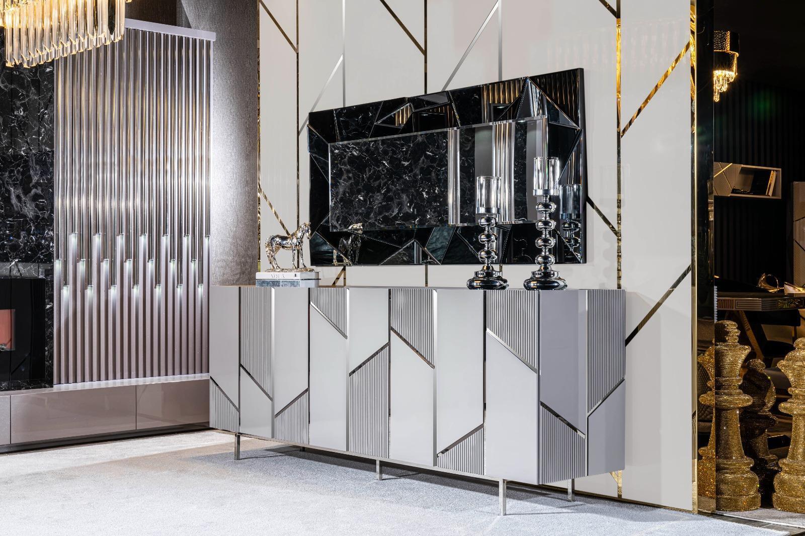 Living Room Suite Set Sideboard Mirror Furniture Group 2-Piece Dresser Gray