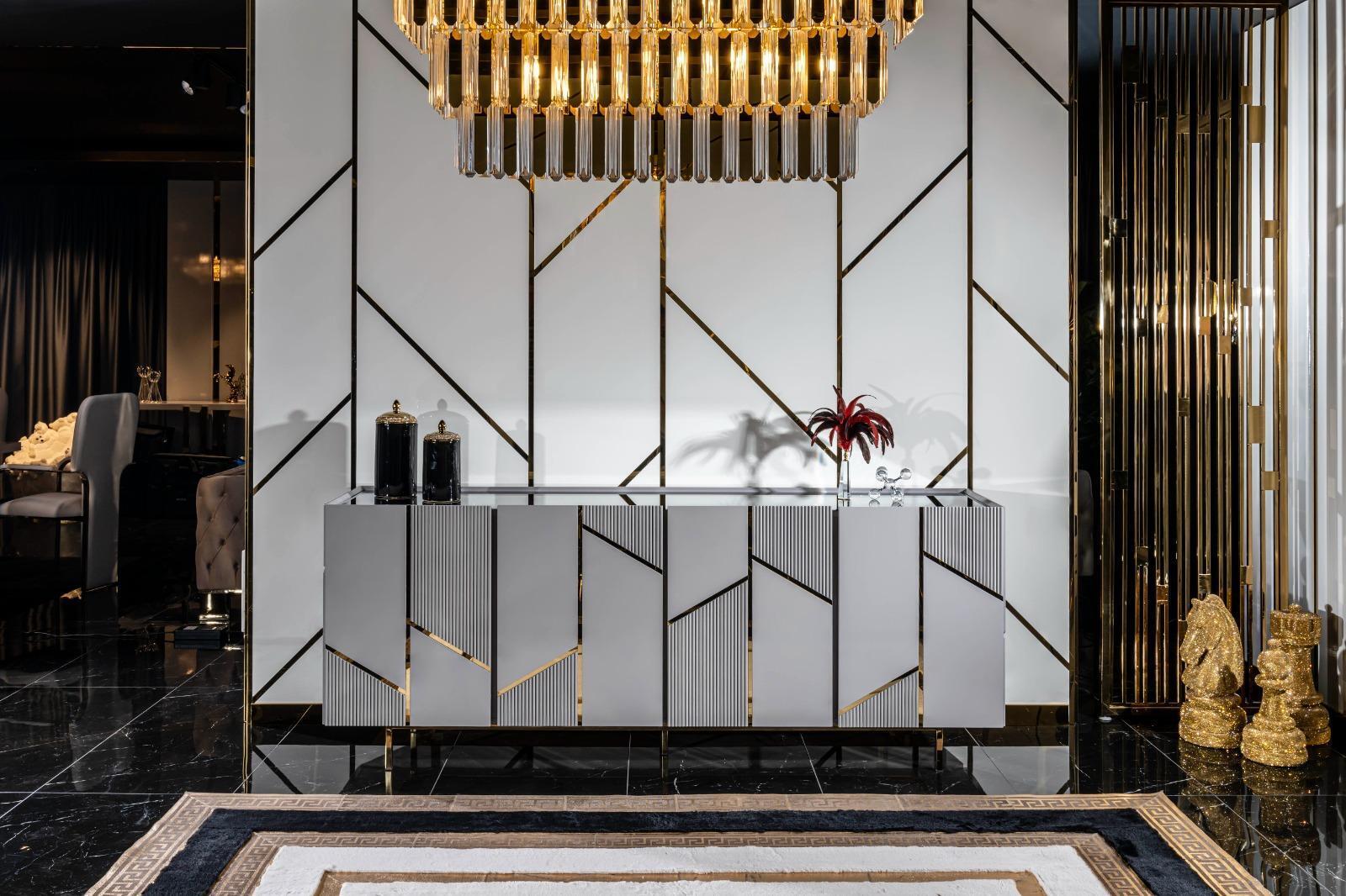 Introducing the 'Living Room Suite Set Sideboard Mirror Furniture Group 2-Piece Dresser Gray' – a stunning combination of form and function designed to elevate your living space. This beautifully crafted set features a **sideboard with dimensions of approximately 220 x 87 x 50 cm**, providing ample storage for your essentials. Its contemporary design is complemented by a sleek **mirror measuring approximately 120 x 96 x 78 cm**, enhancing the sense of space and light in your room. The set's sophisticated color palette is as pictured, blending **wood, glass, and metal** materials to create a modern yet timeless aesthetic that effortlessly complements various interior styles.
