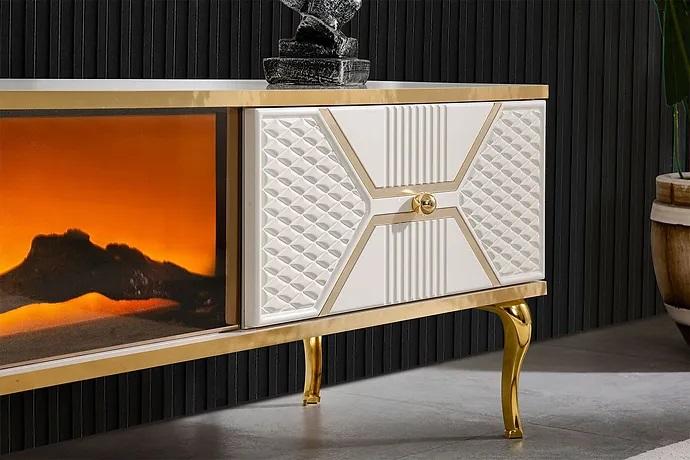 Luxurious TV sideboard with white gold-colored frame made of MDF metal white