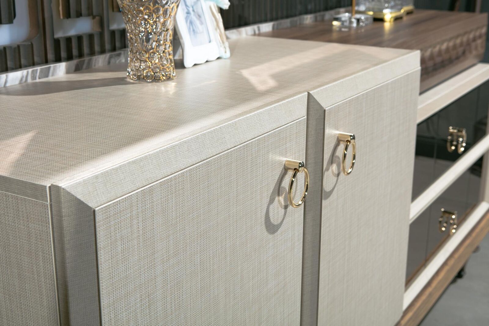 The Console Wardrobe is a sophisticated piece of living room furniture that combines functionality and style. Measuring approximately 204 cm in length, 47 cm in width, and 92 cm in height, this versatile sideboard provides ample storage space while adding a touch of elegance to your living area. Crafted from high-quality wood with metal accents, it presents a modern yet timeless design that complements a variety of interior styles. The blend of materials ensures durability and longevity, making it a worthwhile addition to your home. With its understated color palette, this piece seamlessly integrates into any existing decor, enhancing the overall aesthetic of your space.