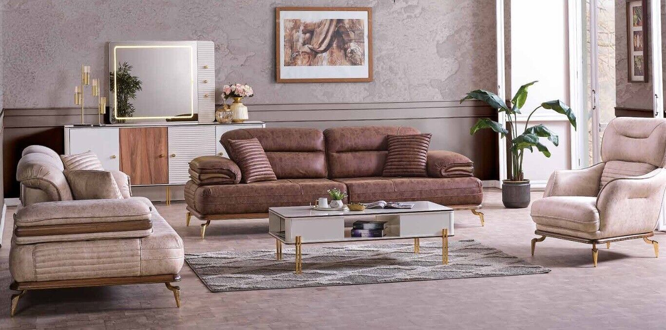 This versatile set is perfect for both everyday relaxation and special occasions. Whether you're hosting a gathering or enjoying a quiet evening at home, the 'Living Room Furniture Set 3+3+1' offers the flexibility and elegance you need. The neutral brown color effortlessly blends with various interior design styles, from contemporary to classic. Imagine the comfort of unwinding in the armchair after a long day or the joy of sharing conversations on the spacious sofas with friends and family. Enhance your living room's appeal and functionality with this thoughtfully crafted furniture set, designed to meet your lifestyle needs while adding a touch of elegance to your home.