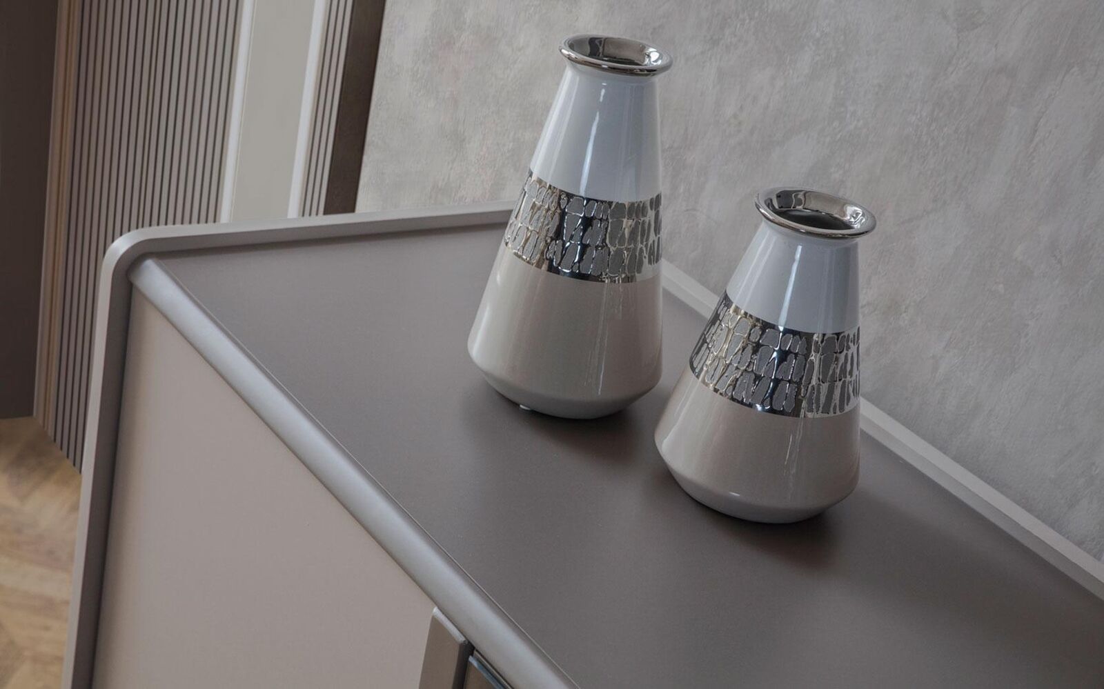 Gray furniture set, designer 4-door sideboard, exclusive 3-piece mirror