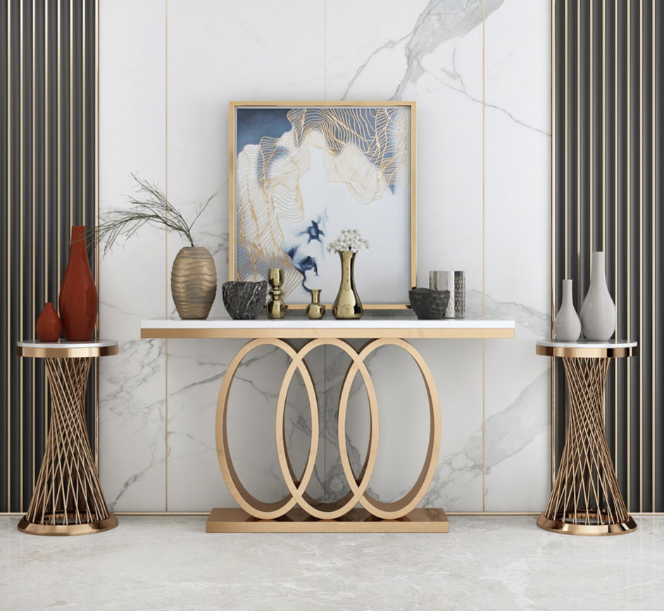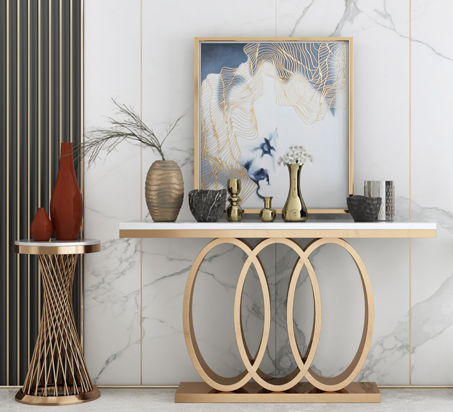The versatile design of this console table allows it to be used in various settings, making it an excellent addition to any home or office. Utilize it as a side table in your living room, providing a chic platform for decorative items, books, or lighting. In a hallway, it serves as a convenient surface for keys and mail, while in the dining area it can function as a stylish serving station or bar. Its robust construction also makes it suitable as a desk console for a minimalistic study space. The innovative blend of durable materials and elegant aesthetics ensures this table is not only a functional piece but also an artful statement in any environment.