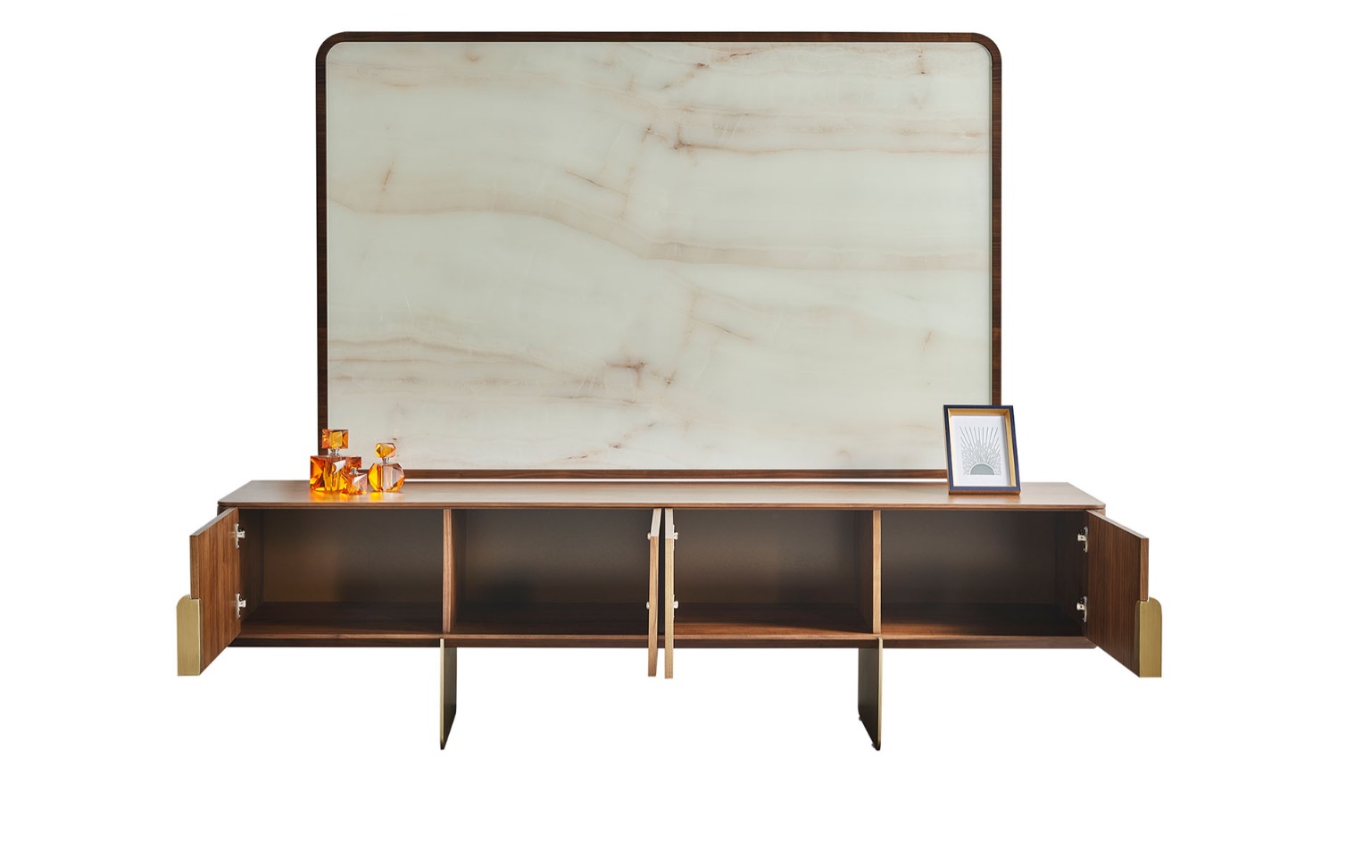 Living room set consists of display cabinet, TV lowboard, and TV frame 3-piece new.