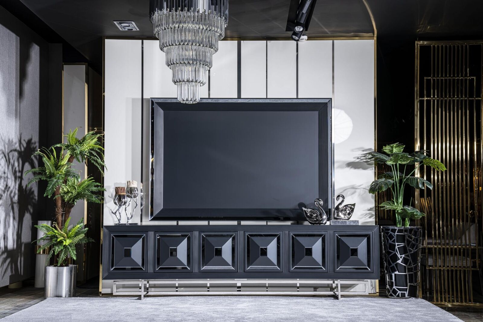 Beyond its aesthetic appeal, the 'Living room TV cabinet TV stand cabinet lowboard new black' also excels in functionality. Its generous dimensions give you the freedom to organize and display your entertainment equipment conveniently, while the lowboard design offers both visibility and accessibility to your TV and media players. This TV cabinet is perfect for showcasing your favorite decor items or storing multimedia essentials, ensuring your living area remains tidy and inviting. Whether you're enjoying a movie night with family or entertaining guests, this TV stand promises to be a practical and eye-catching centerpiece in your living room setup.