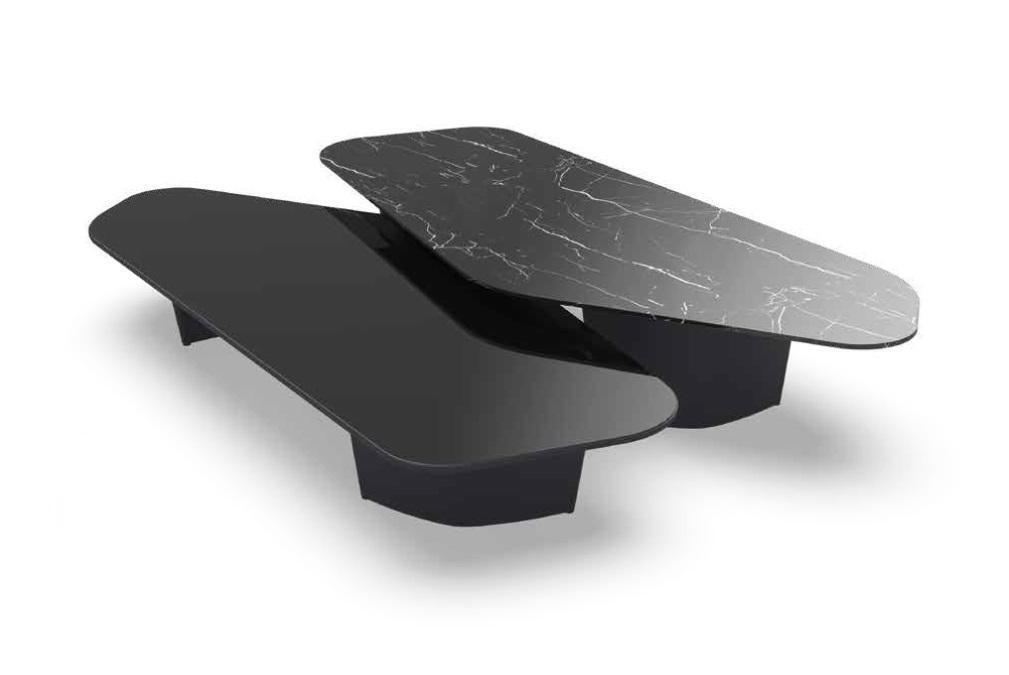 These versatile coffee tables are the perfect centerpiece for any modern living room. Whether used together or separately, they provide ample surface space for everything from entertaining guests to enjoying a quiet cup of coffee. The tables' sophisticated design ensures they blend seamlessly with a variety of interior styles, from contemporary to classic. Use the larger table as a focal point for your seating area, while the smaller one can function as an elegant side table or extension of your main table. With their striking appearance and practical dimensions, these tables offer both beauty and utility for any home setting.