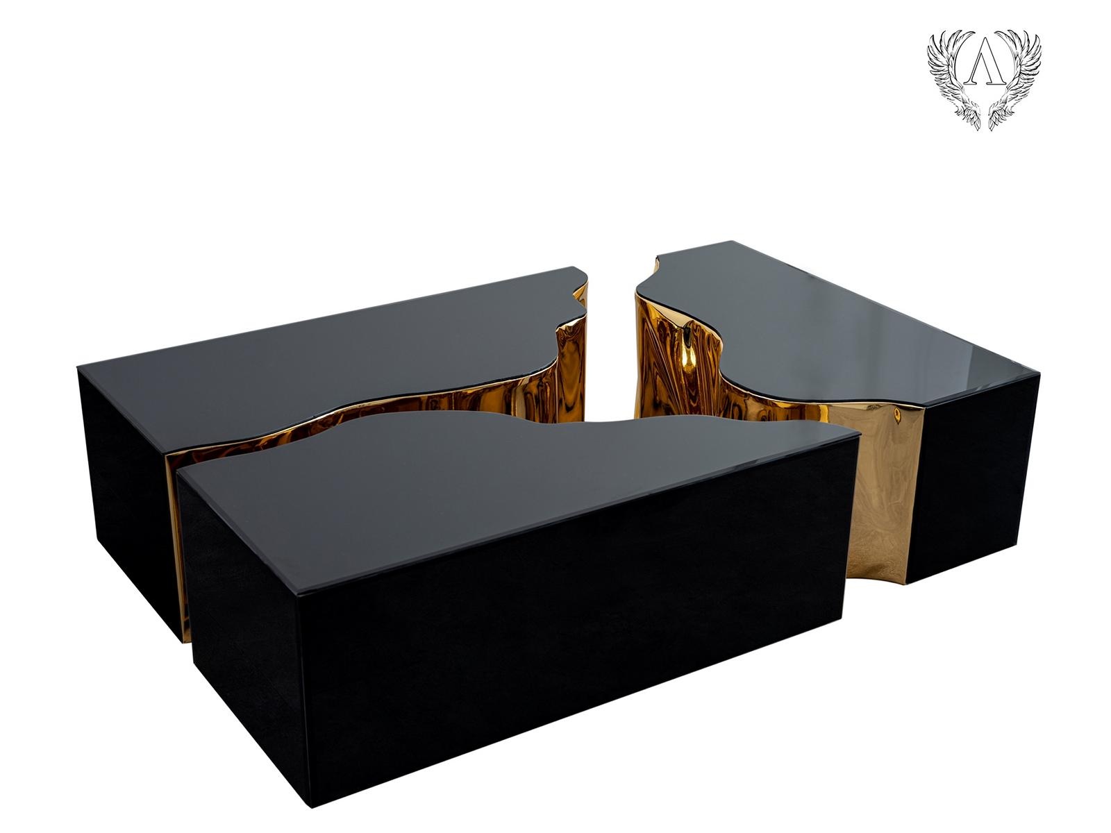 The Modern Luxury Black Coffee Table in Three Parts epitomizes sophistication and design mastery. Crafted with precision, its sleek silhouette and striking black finish create a bold statement in any living space. Each modular component seamlessly interlocks, offering versatility while enhancing the aesthetic allure of your home. This exquisite piece embodies the essence of contemporary elegance, making it the perfect centerpiece for discerning individuals who appreciate the finer things in life. With 20 years of expertise in luxury furniture, our brand delivers unparalleled quality and style, ensuring that this coffee table not only complements your decor but also elevates your exclusive lifestyle. Indulge in the art of living well.