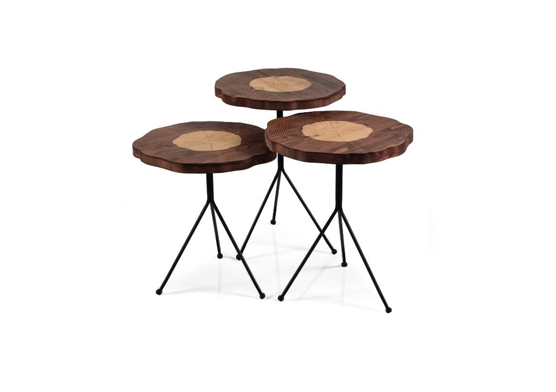 Set of 3 side tables, brown, living room table, round, designer, modern luxury table