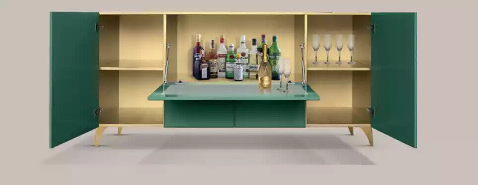 Beyond its impressive appearance, the 'Sideboard Luxury New Green Console' is incredibly functional, making it suitable for a variety of uses. The generous 180 cm length provides a spacious surface for displaying artwork, vases, or other decorative items, enhancing your living space's aesthetic appeal. The height of 94 cm and width of 51 cm allows for easy placement in various room settings, whether it's in the living room, hallway, or dining area. Its internal storage space is perfect for organizing dishes, linens, or everyday essentials, helping to keep your home clutter-free. This sideboard can be the elegant centerpiece that completes your modern living room or the functional yet stylish solution to your storage needs, making it a versatile choice for any home.