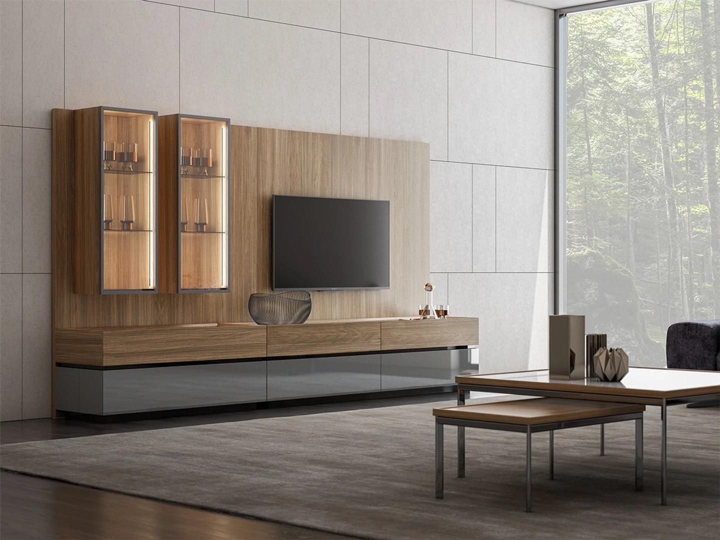 Luxury Complete Living Wall Brown Furniture Designer Set Furnishing TV Stand Modern