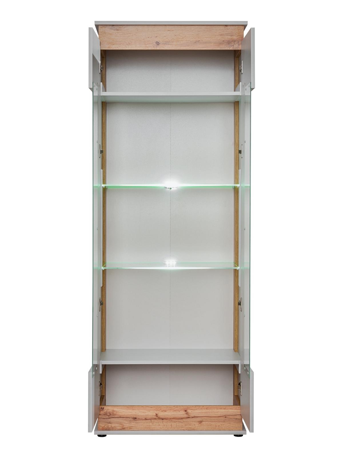 Modern gray-brown wooden wall with TV stand and 2 luxury display cabinets