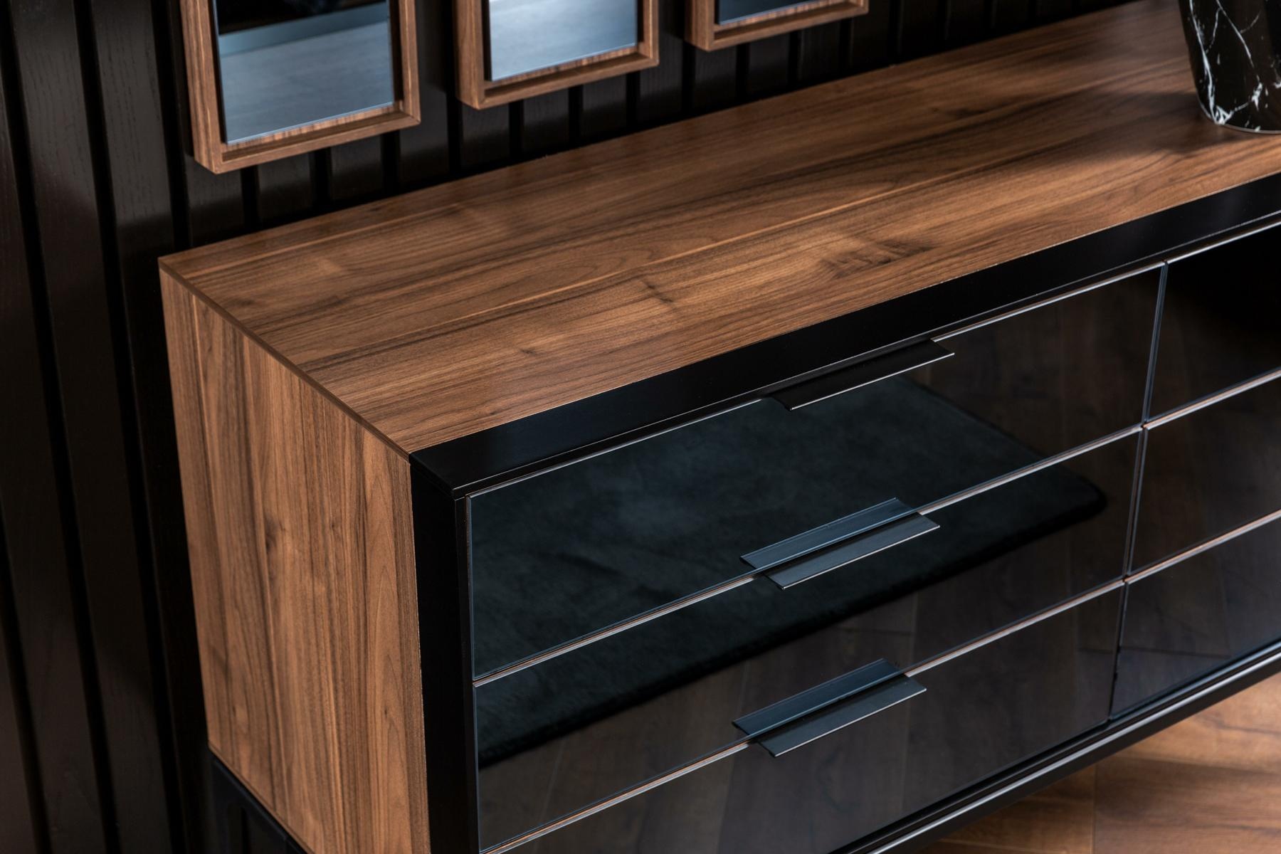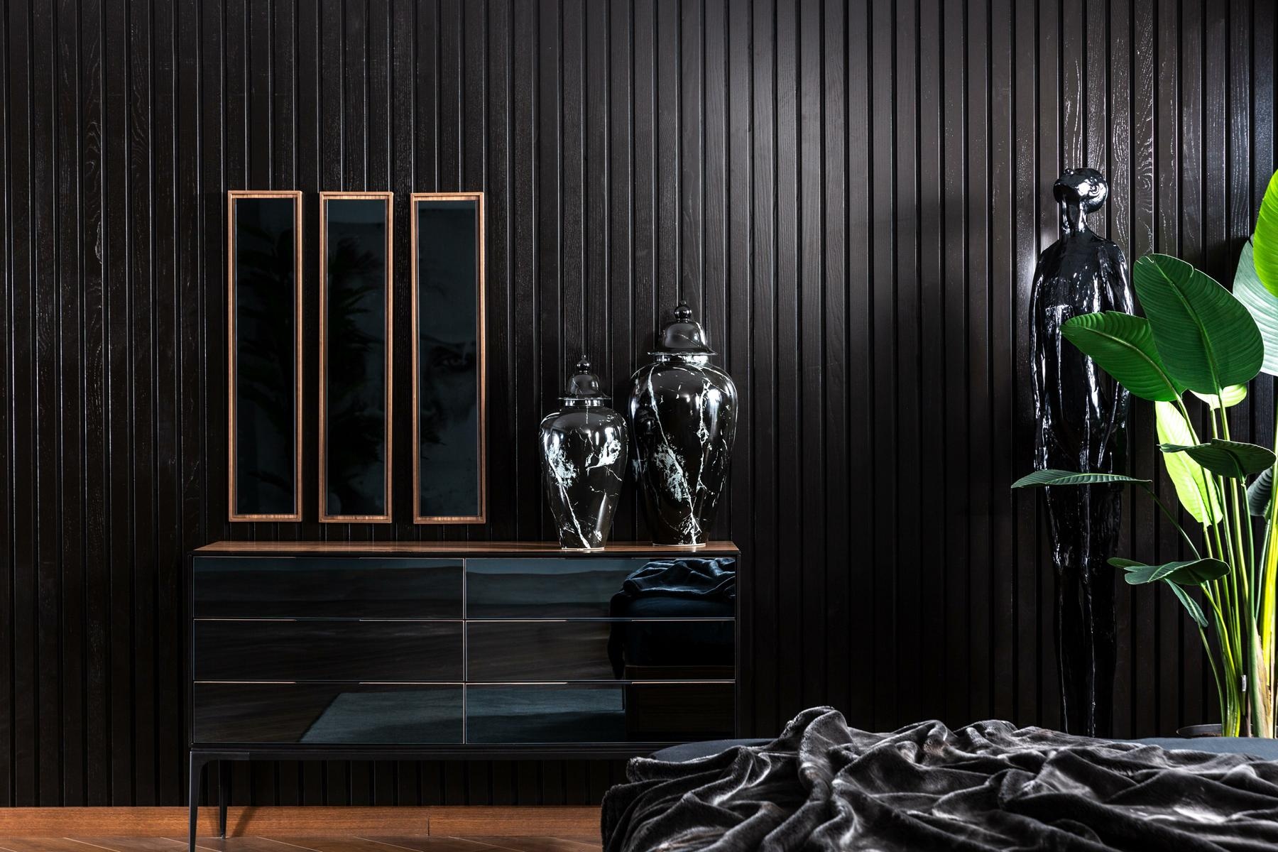 Introducing a striking black chest of drawers that epitomizes sophistication and practicality. With an impressive 139 cm of storage space, this piece seamlessly combines functionality with an elegant aesthetic. Its sleek black finish, crafted from premium materials, makes it a versatile addition to any refined interior, effortlessly enhancing your space. Each drawer opens smoothly, offering ample room for your belongings while maintaining an air of understated luxury. Designed for those who appreciate exclusivity, this chest of drawers not only serves as a storage solution but also as a statement piece that reflects a lifestyle of elegance and taste. Elevate your home with this essential embodiment of modern luxury.