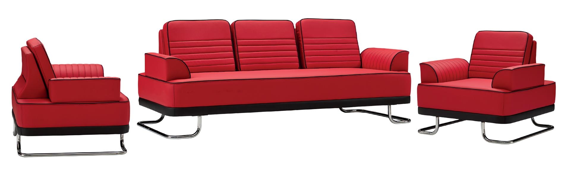 Indulge in the epitome of sophistication with the Complete 3-piece leather sofa set, meticulously crafted to elevate your living space. This striking ensemble, featuring a spacious three-seater flanked by two elegantly designed armchairs, is upholstered in sumptuous red polyester that radiates warmth and luxury. Every curve and seam is a testament to two decades of expert craftsmanship, ensuring not just aesthetic appeal but enduring quality. The rich hue enhances a curated ambiance, making it a centerpiece in any exclusive home. Experience unparalleled comfort while embracing a lifestyle defined by elegance and refinement. This sofa set is more than furniture; it is an invitation to indulge in the art of living beautifully.
