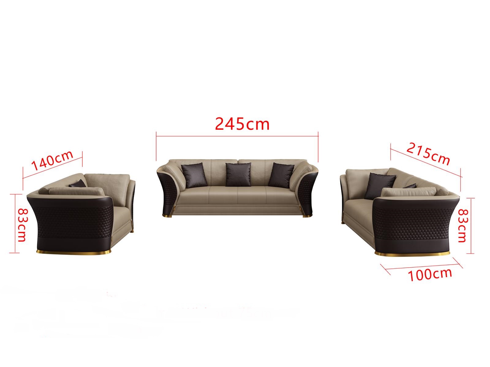 Ideal for both modern and traditional settings, the 'Exclusive Leather Sofa Couch Cushion Suite 321' transforms any room into a sanctuary of comfort and sophistication. The sofas are crafted with an inner frame made of **real wood**, ensuring superior stability and longevity. Whether you are hosting a gathering or enjoying a quiet evening at home, this suite accommodates your needs with its variety of seating options. The **cowhide from Italy** used in the genuine leather option delivers a plush, luxurious feel while maintaining durability with a thickness of up to approximately 2.50 mm. This exquisite piece can serve as the focal point of your living room, offering both aesthetic appeal and functional seating that family and guests will appreciate. Elevate your home ambiance with a suite that's as comfortable as it is stunningly stylish.