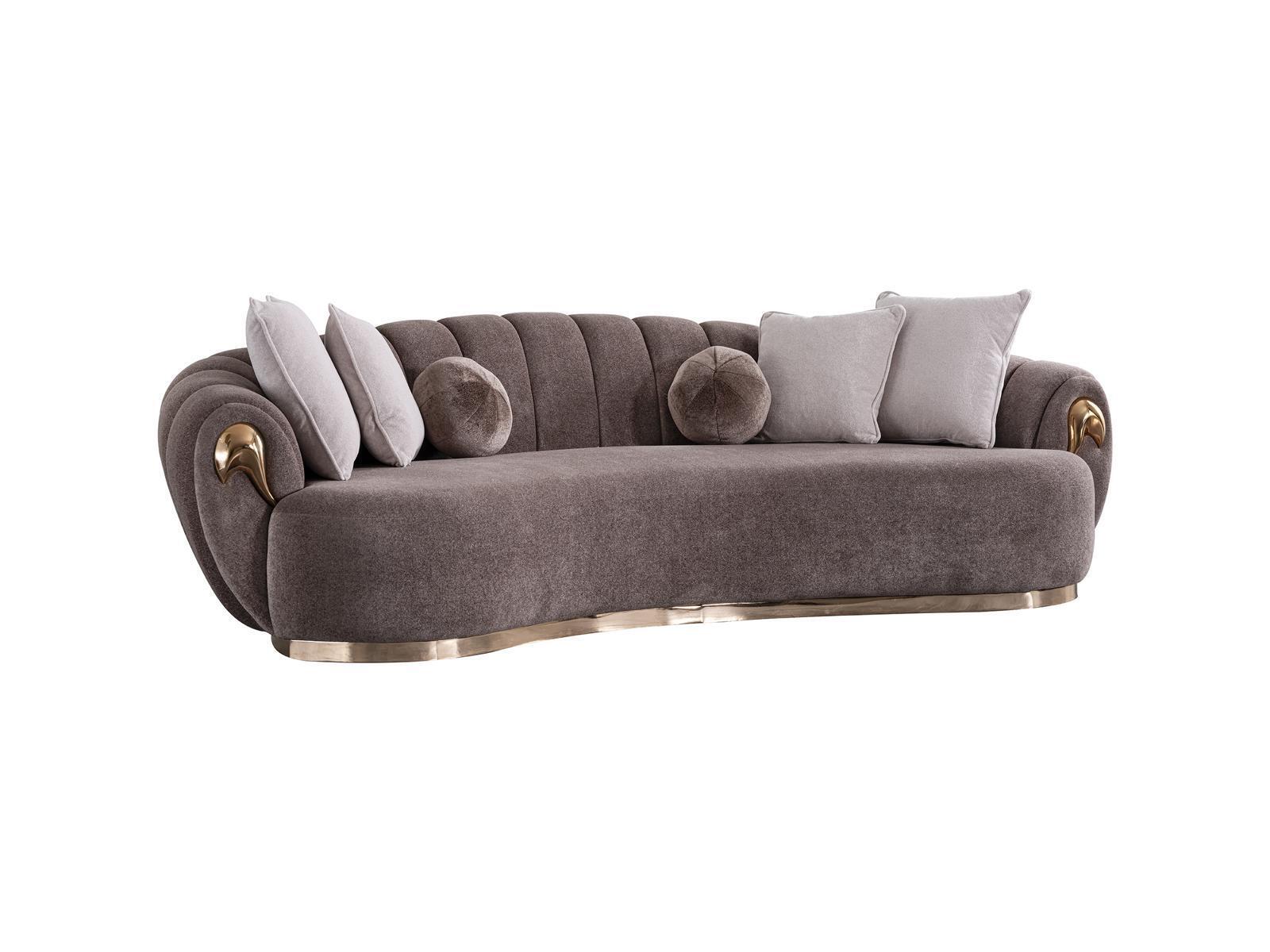Introducing the Luxury Living Room Sofa Set 3+3+1 Seat Half Round Couches Sofa with Table 4-Piece Set, a stunning ensemble that combines elegance with comfort. This set is a sophisticated choice for any modern living room, featuring two expansive 3-seater sofas with dimensions of approximately 263 x 125 x 75 cm each, along with a versatile armchair (measuring approximately 90 x 80 x 85 cm) that provides plush seating for your relaxation needs. The included coffee table, measuring approximately 60 x 60 x 55 cm, complements the set perfectly, offering a convenient surface for drinks, decor, or your favorite books. Built with an inner frame made from real wood and upholstered in high-quality textile with a sturdy wood/metal combination, this sofa set promises durability and timeless style. Available in the color shown, with additional options on request, this exquisite set seamlessly blends into any decor.