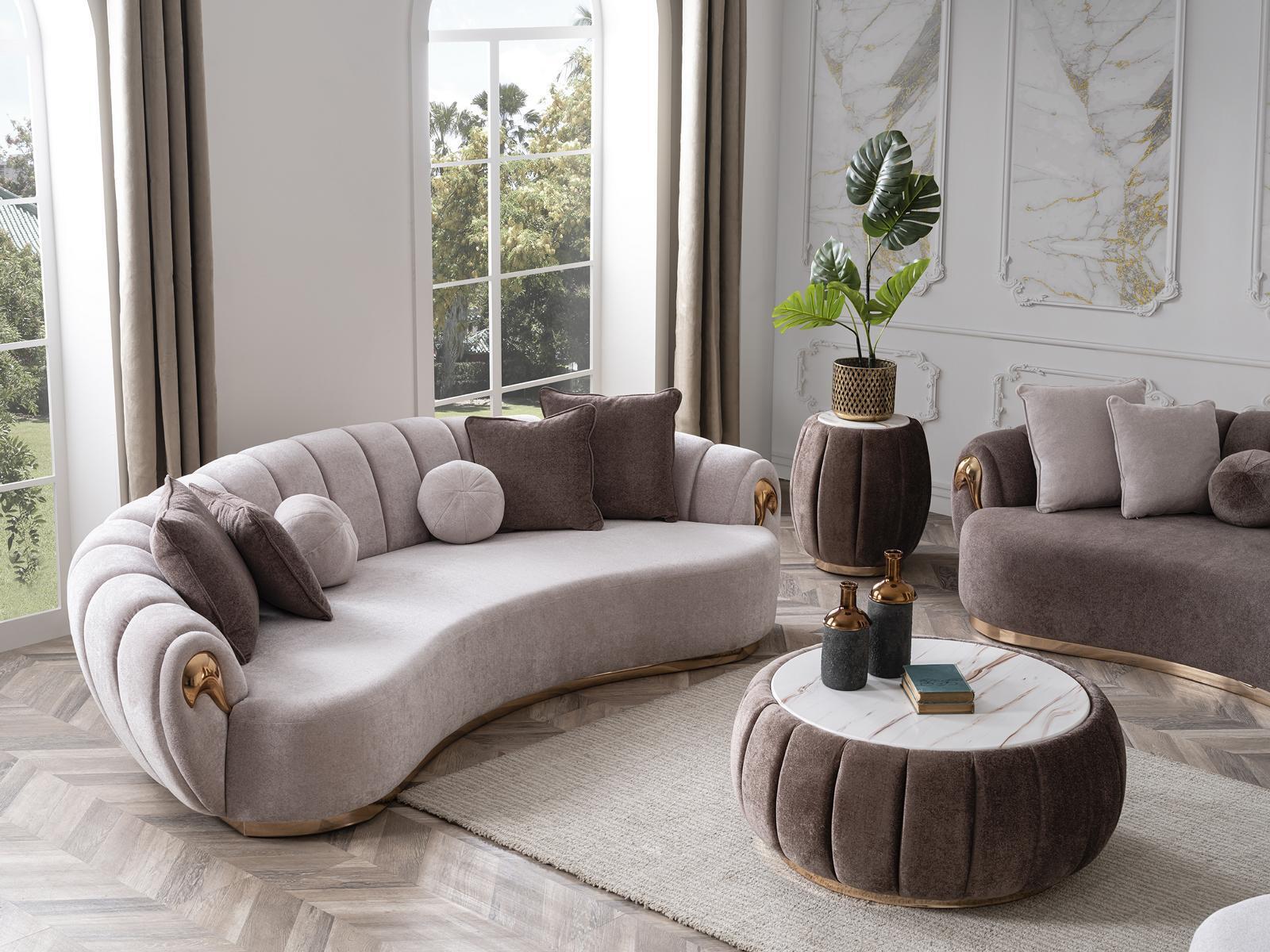 Luxury Living Room Sofa Set 3+3+1 Seat Half Round Couches Sofa with Table 4-Piece Set.