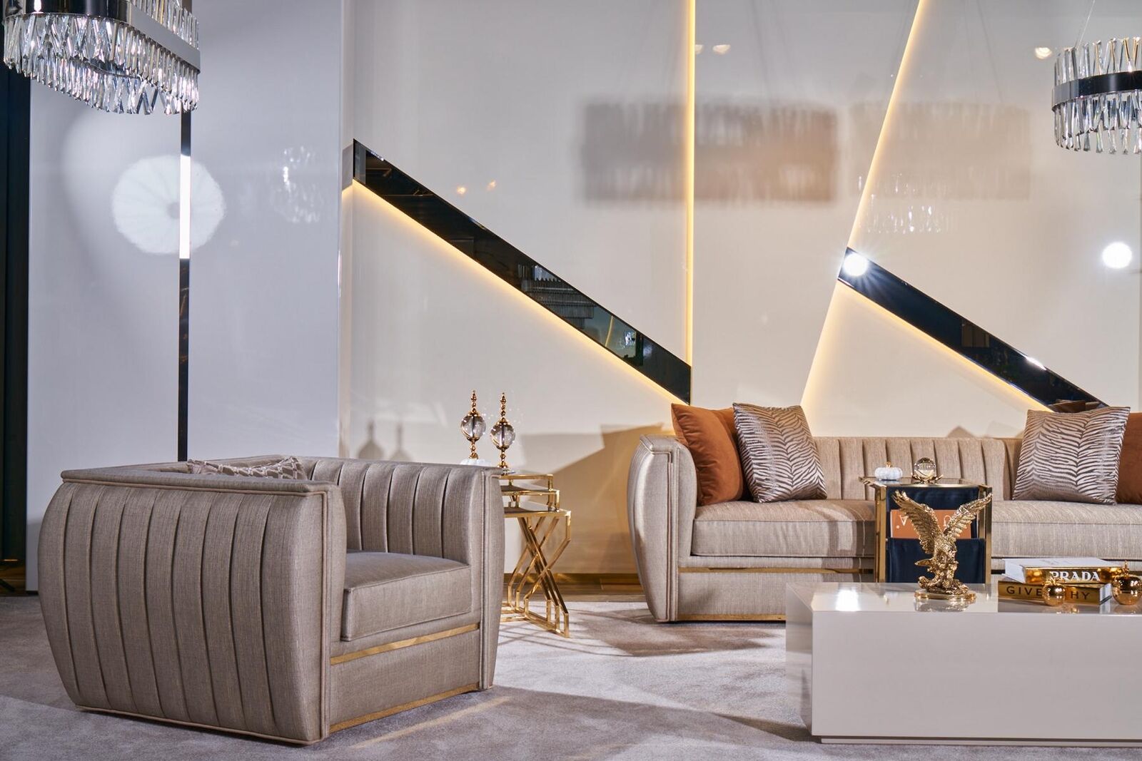 The 'Designer Sofa Set 3+1 Coffee Table' embodies contemporary elegance and comfort, perfect for creating a modern living area that stands out. This exquisite set includes a spacious and inviting 3-seater sofa, a plush armchair, and a sleek coffee table, all exquisitely coordinated in a sophisticated beige upholstery. Crafted with a combination of high-quality wood, textile, and metal materials, this set promises durability and style. The sofa and armchair are designed with optimal comfort in mind, featuring a **seat height of 44 cm** and a **seat depth of 56 cm** that are perfect for relaxation and socializing. Measuring approximately **240 x 120 x 80 cm**, the 3-seater offers ample space, while the armchair adds versatility to your seating options. The coffee table, sized at **120 x 80 x 45 cm**, serves as a chic centerpiece, perfectly complementing the seating with its minimalist design.