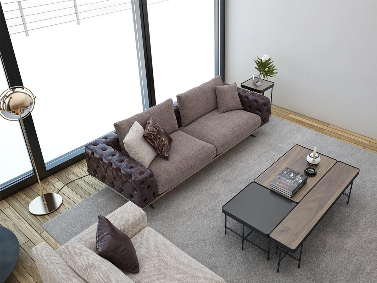 Elevate your living space with the Living Room Set 2-piece Modern 2x Three-Seater Sofa Couch Upholstered Furniture Luxury. This elegant furniture set offers a harmonious blend of style and functionality, making it an ideal addition to any modern home. The set includes two generously-sized three-seater sofas, each crafted with an impressive attention to detail. With dimensions of approximately 255 cm in length, 100 cm in width, and 70 cm in height, these sofas provide a comfortable and spacious seating area for you and your guests. The seat height is approximately 42 cm, while the seat depth is approximately 52 cm, offering both comfort and support. The luxurious upholstery is enhanced by a sturdy wood frame, ensuring durability and a sophisticated look. The set is available in various color options, catering to your personal taste and interior design needs.