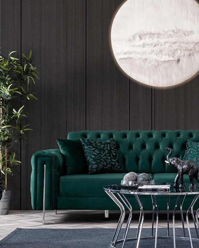 Indulge in the epitome of modern elegance with our 3-seater textile sofa set, expertly crafted to elevate your living space. Measuring 228 x 98 x 85 cm, this sumptuous piece is upholstered in a rich green polyester that exudes sophistication and warmth. Its sleek lines and contemporary silhouette seamlessly integrate into an exclusive home ambiance, making it a statement of refined taste. The luxurious fabric invites comfort, while the robust construction ensures lasting quality, embodying two decades of our commitment to exceptional craftsmanship. Choose this sofa set to effortlessly enhance your lifestyle, reflecting a discerning eye for design and a passion for the extraordinary.