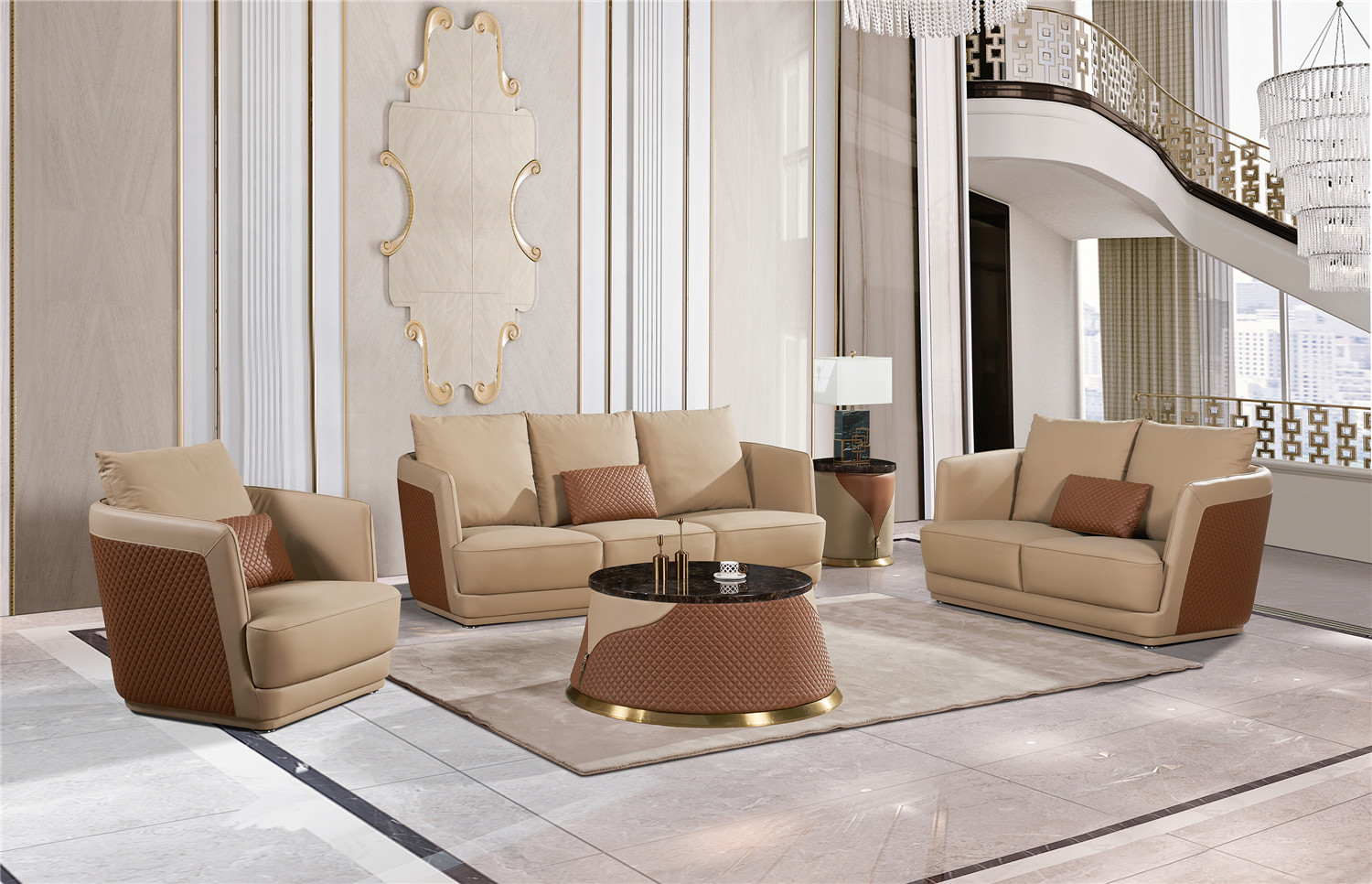 This sofa set is more than just a seating solution; it's a lifestyle upgrade. Imagine hosting an elegant dinner party, where conversations flow seamlessly across the 220 cm length of the main sofa, or enjoying quiet evenings nestled in the snug 85 cm armchair with your favorite book. For those seeking an even more elevated experience, the suite is available in additional premium materials, including premium genuine leather sourced from Italian cowhide for a superior feel and look. This choice comes with a €399.00 surcharge but promises unmatched luxury. Whether you're furnishing a chic city apartment or a cozy suburban home, the Living Landscape Sofa Set adapts to your lifestyle, offering both functionality and style that endures.