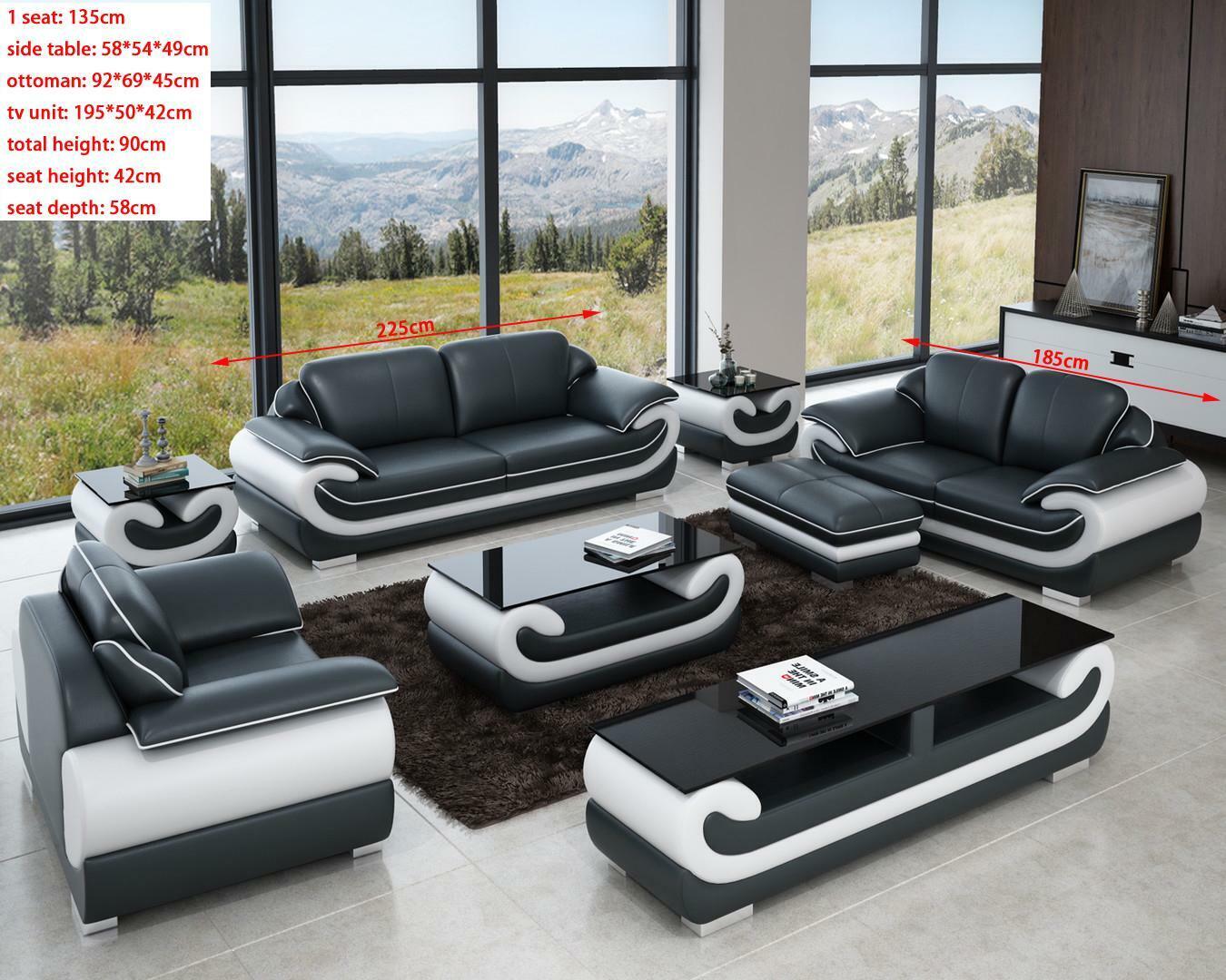 Leather sofa couch living landscape 3+1+1 seater set design modern sofa