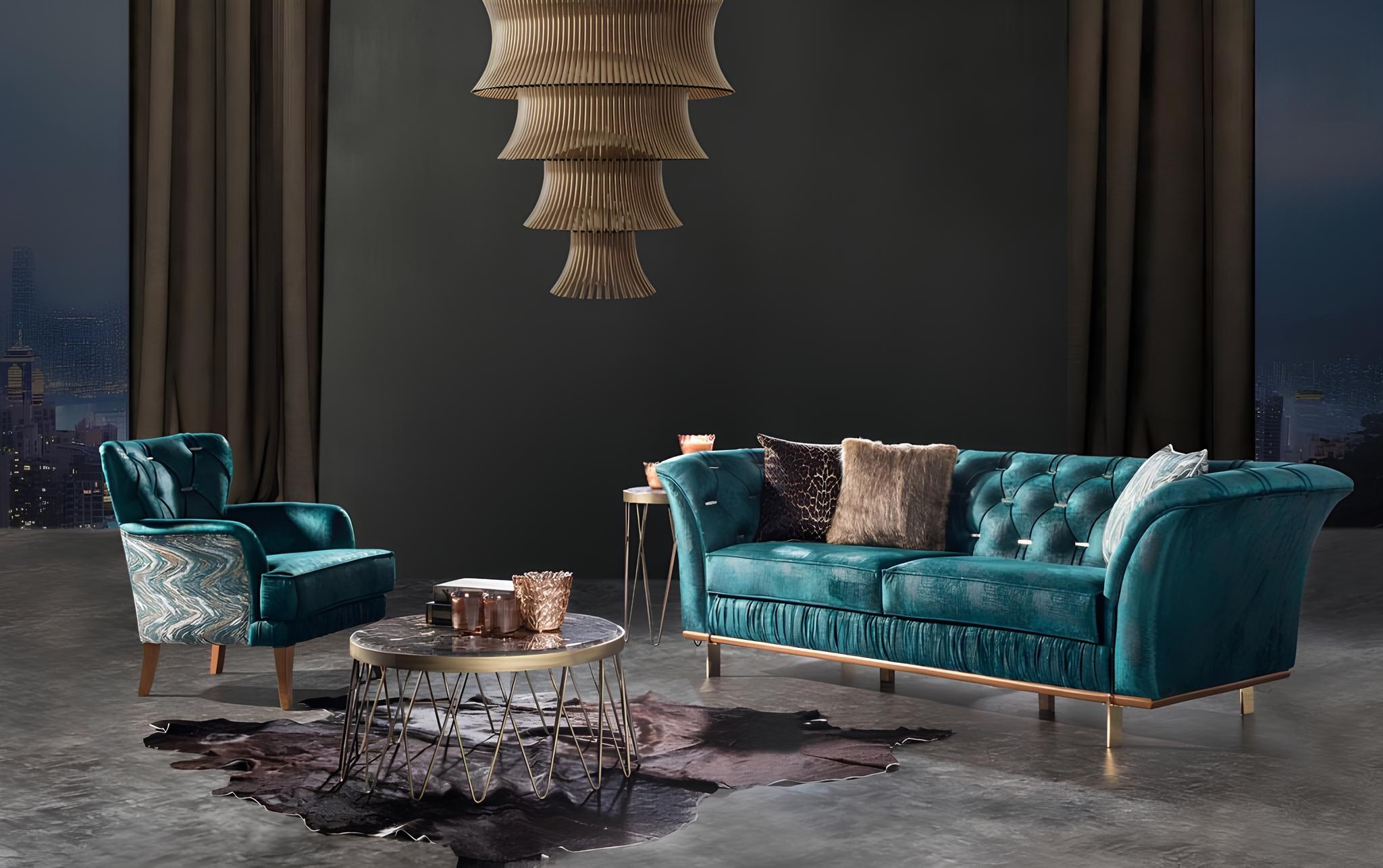 Modern luxury turquoise sofa for the living room