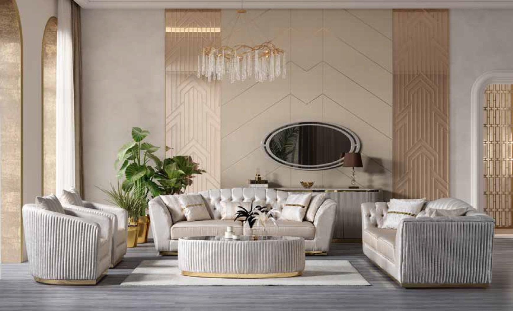 Introducing the 'Sofa Set 3+2+Coffee Table+Sideboard for Living Room Set New', a comprehensive furniture collection designed to elevate your living space. This stylish set includes a spacious 3-seater sofa measuring approximately 286 cm in length, ensuring ample space for family and guests. Alongside is a comfortable 2-seater sofa designed for cozy seating, making it perfect for smaller gatherings or intimate conversations. Complementing these is a chic coffee table that's approximately 134 cm in length, ideal for hosting beverages, books, or decorative pieces. The set is completed with a versatile sideboard, measuring about 220 cm in length, providing essential storage solutions while adding a touch of elegance to your home. Crafted from durable wood and metal, this set promises longevity and sturdiness, adding a modern aesthetic that suits a variety of decor styles.