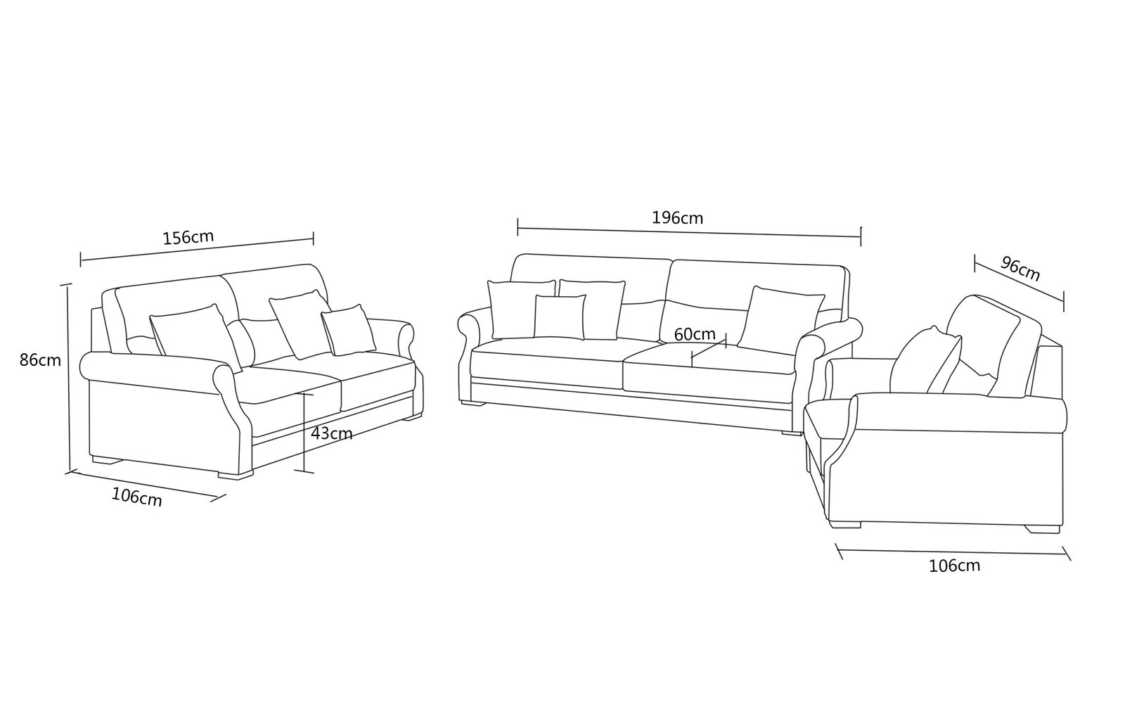 Length:       approx. 196/156/96 cm .